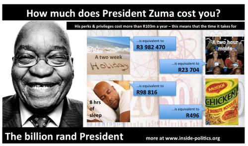 […] to the article The Billion Rand President: Facts and Figures that is based on the original article: The Billion Rand President: How much Jacob Zuma costs […]