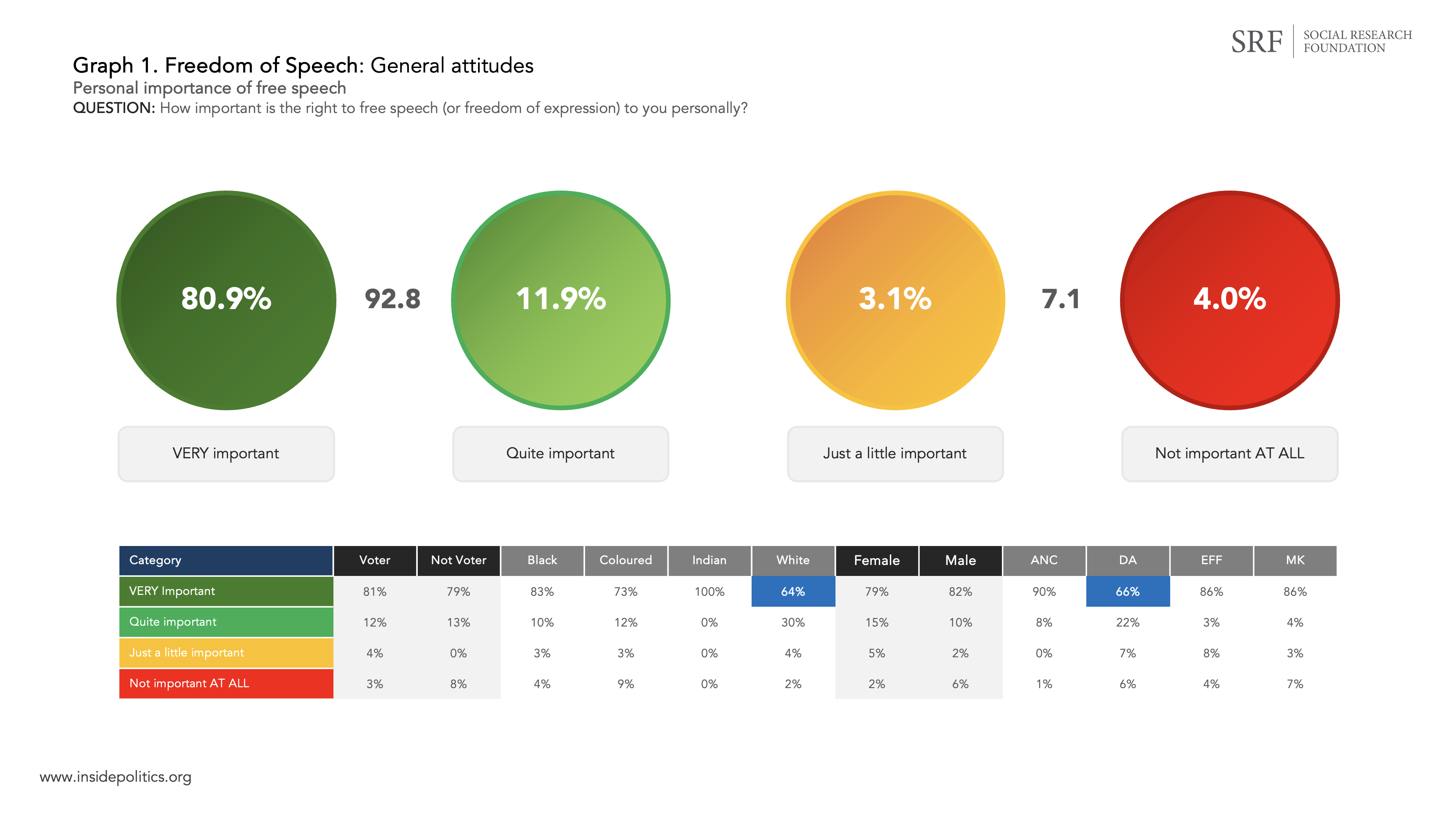 Graph 1 (below) sets out how important people personally regard the right to free speech.