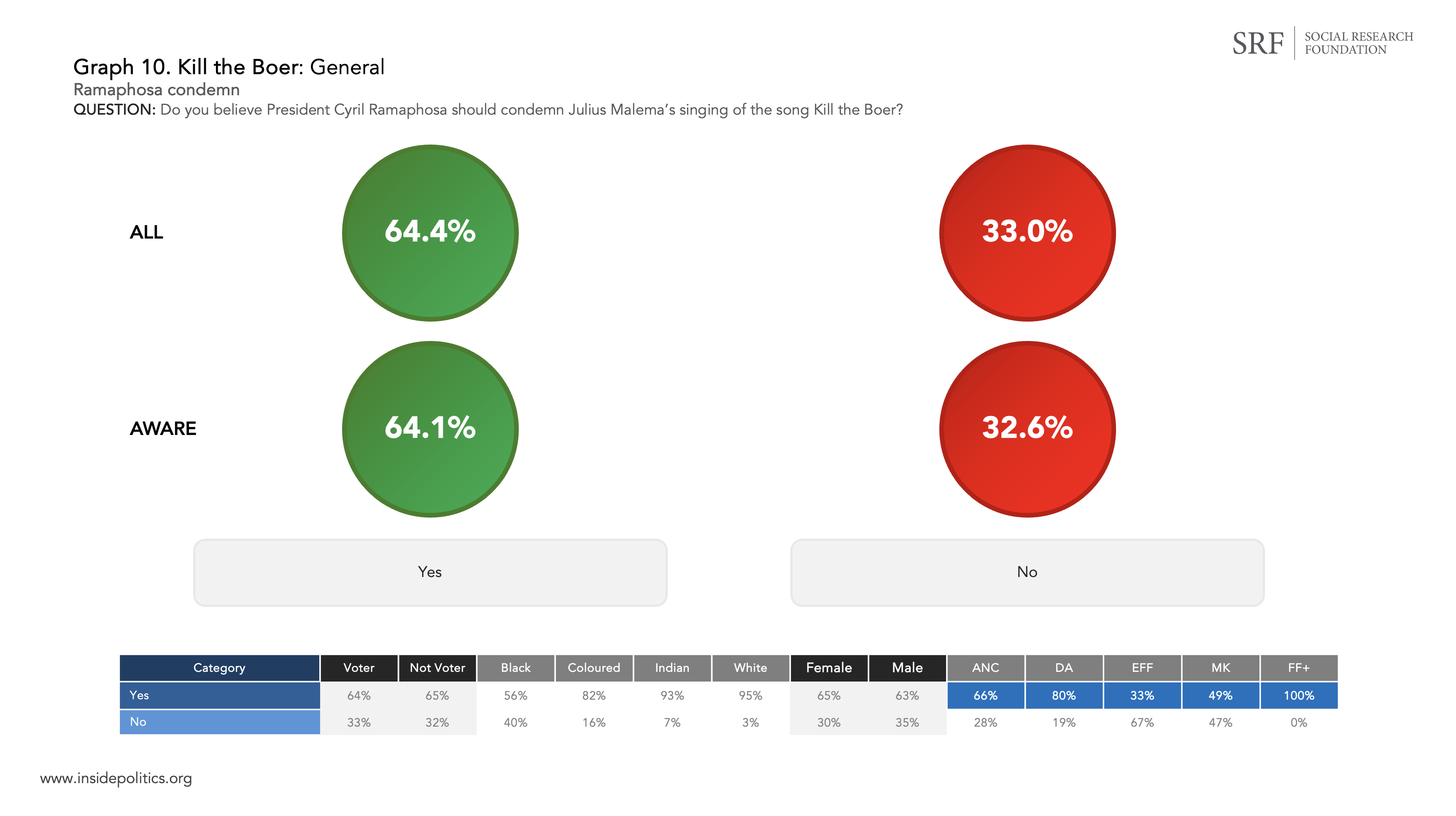 Graph 10 (below) is a simple question, designed to gauge whether people believe President Ramaphosa should condemn Malema’s singing of the song (the presidency recently refused to do so).