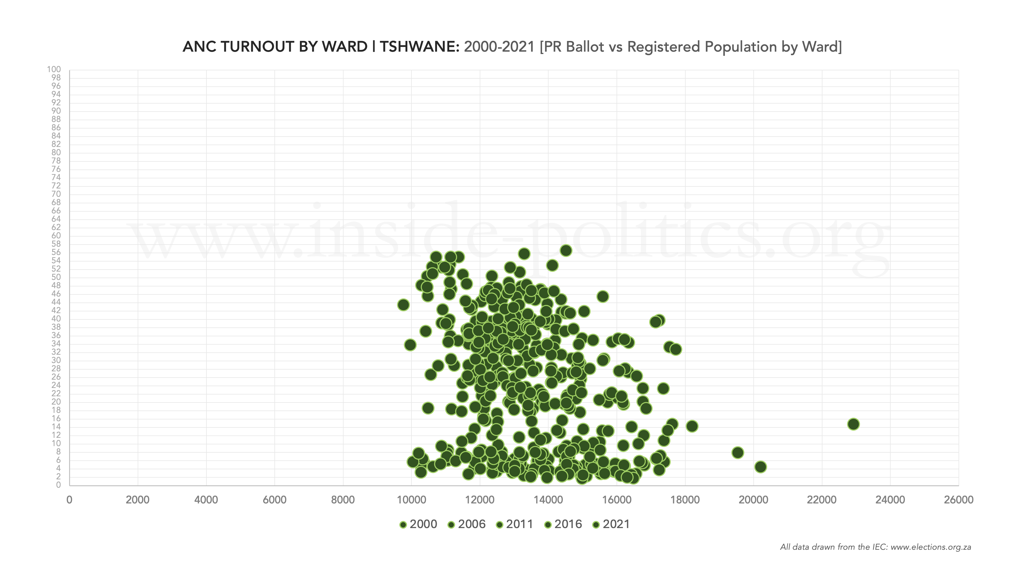 ANC Turnout: Tshwane | All Wards | All Years (2000-2021)