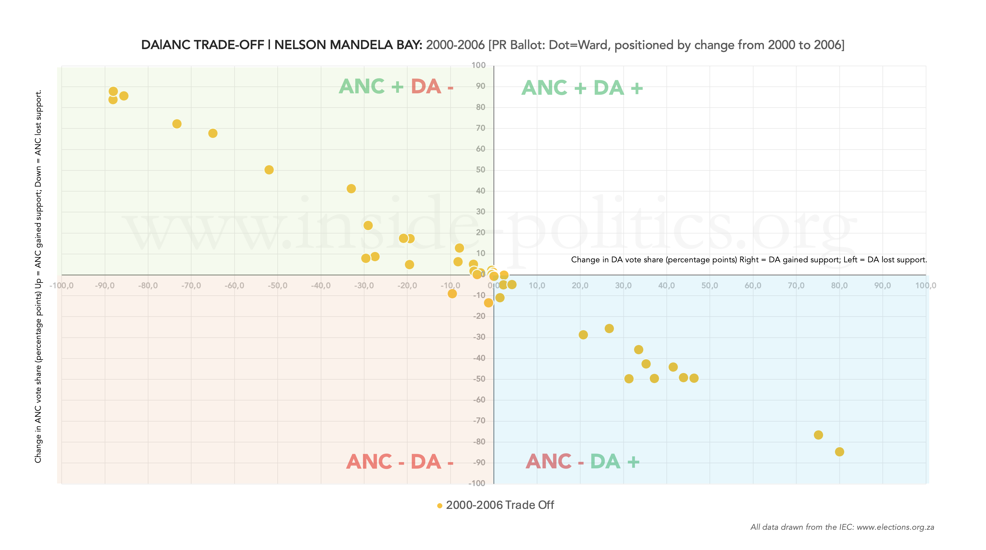ANC-DA Trade-Off: Nelson Mandela Bay | By Ward [54 comparable wards] | 2006 [from 2000]