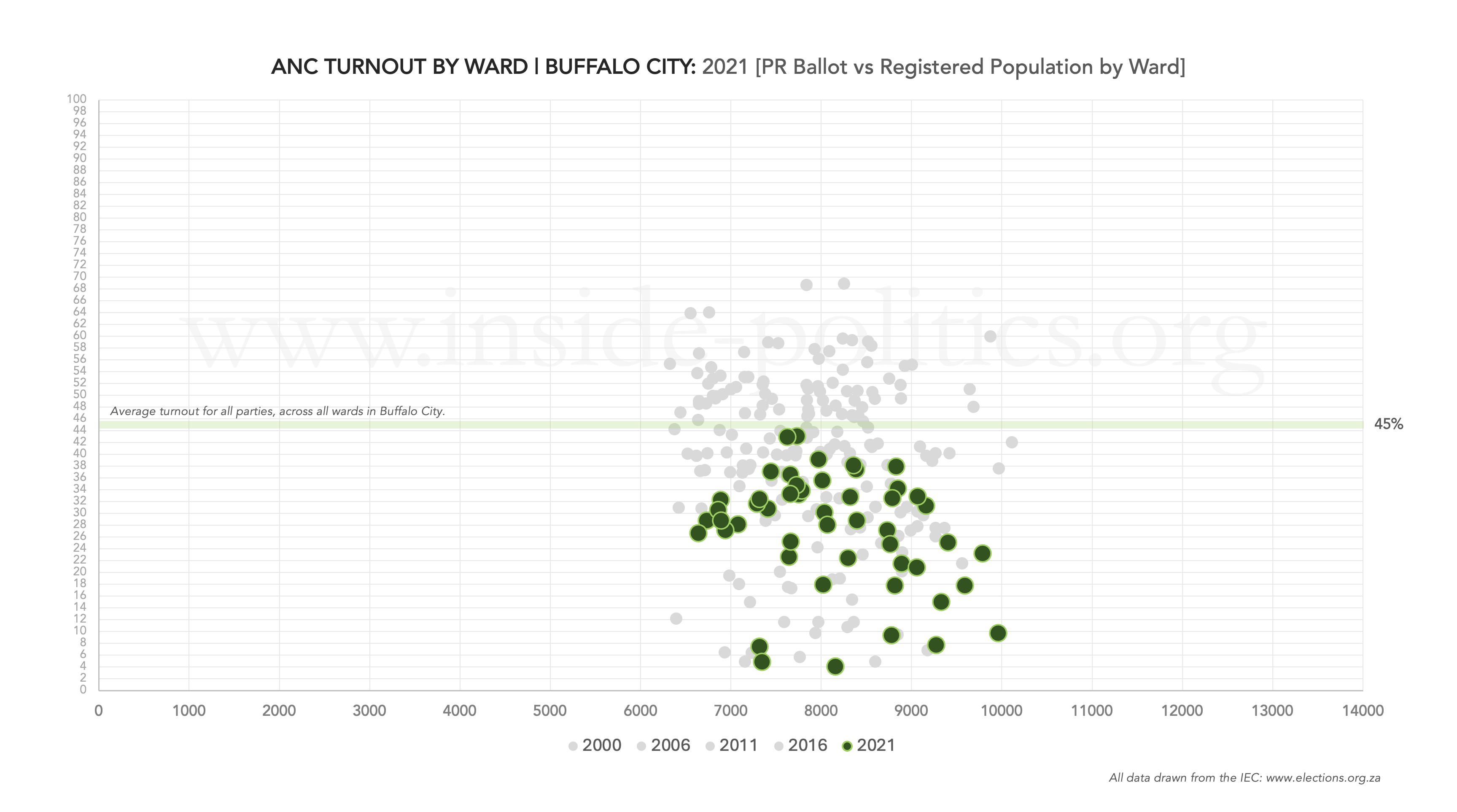 ANC Turnout: Buffalo City | All Wards | All Years (2000-2021)