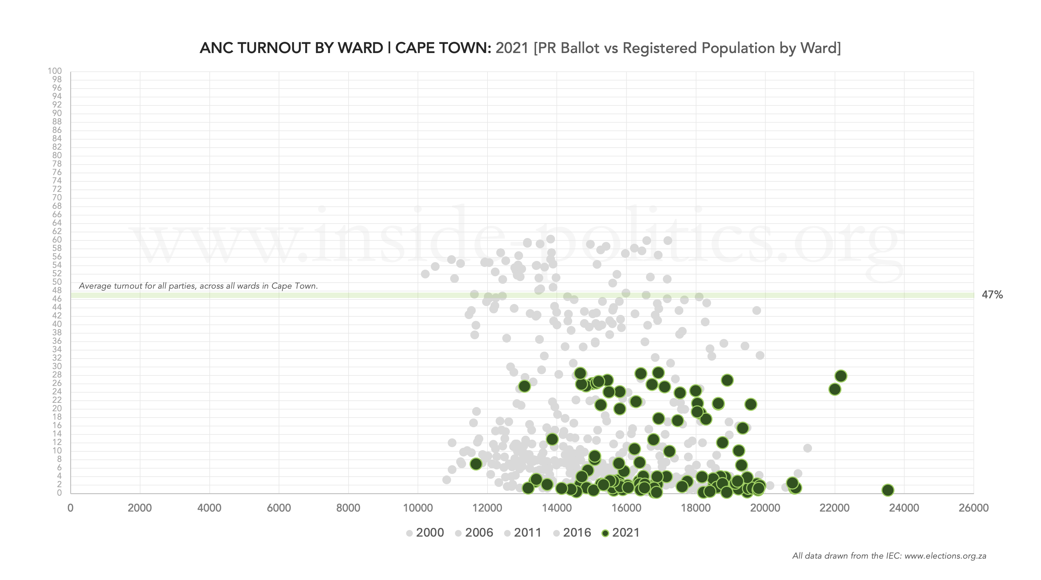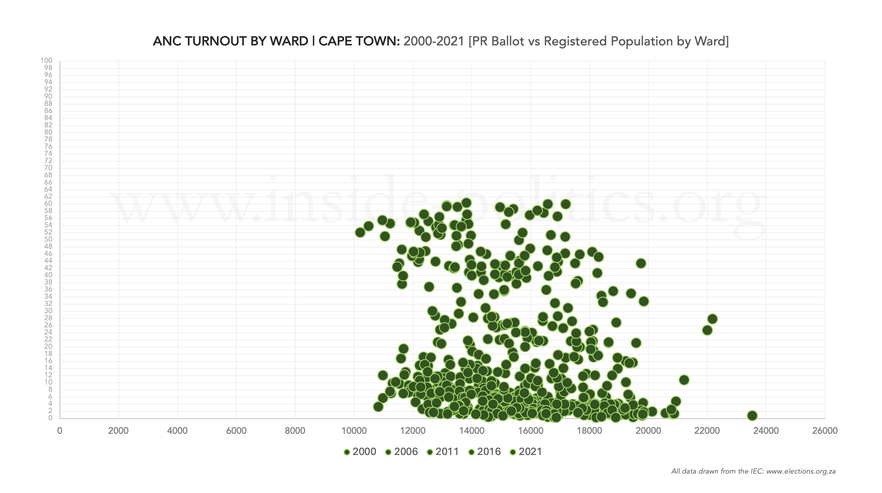 ANC Turnout: Cape Town | All Wards | All Years (2000-2021)