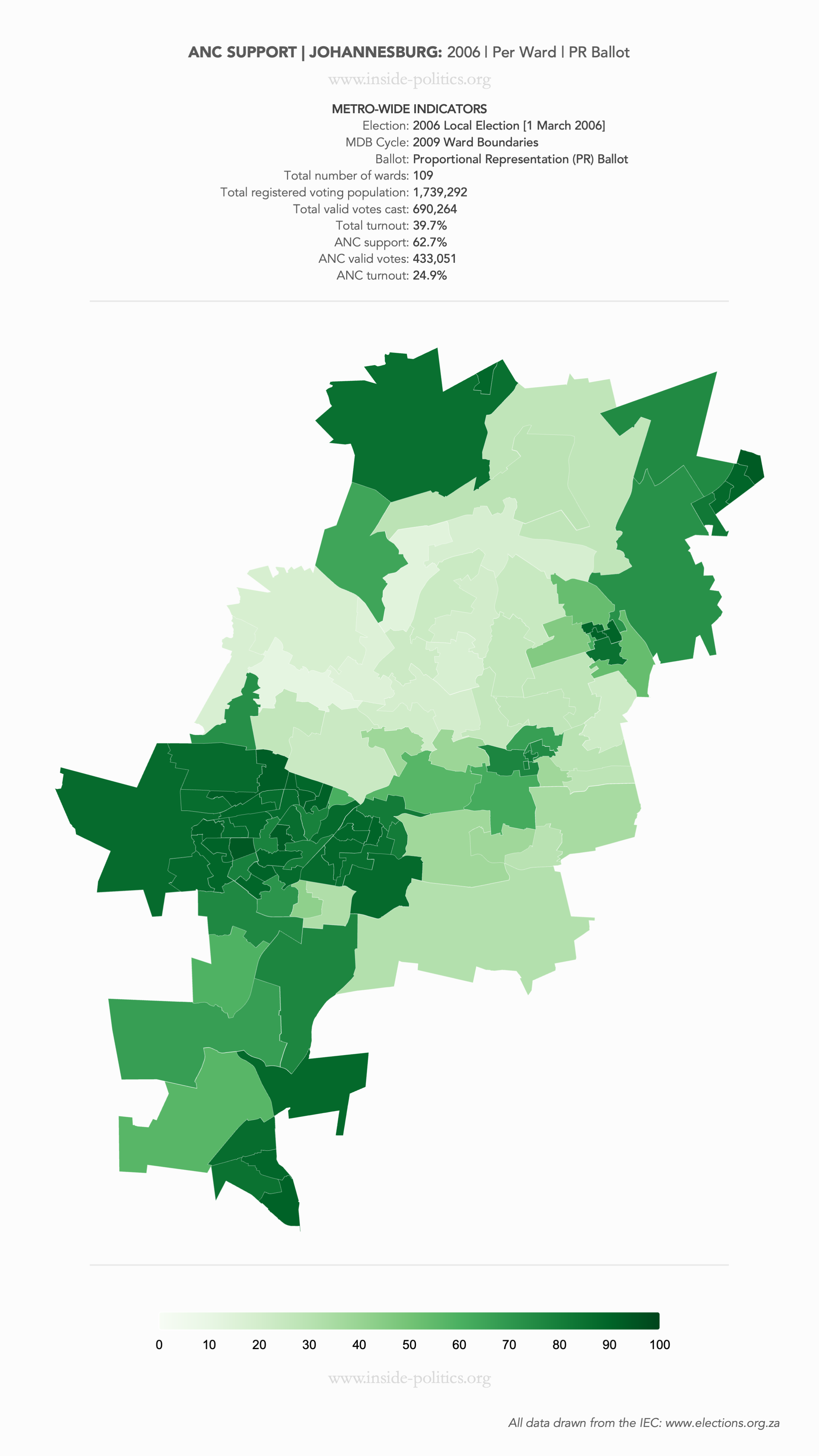 Heat Map: Johannesburg | 2006 | ANC Support by Ward