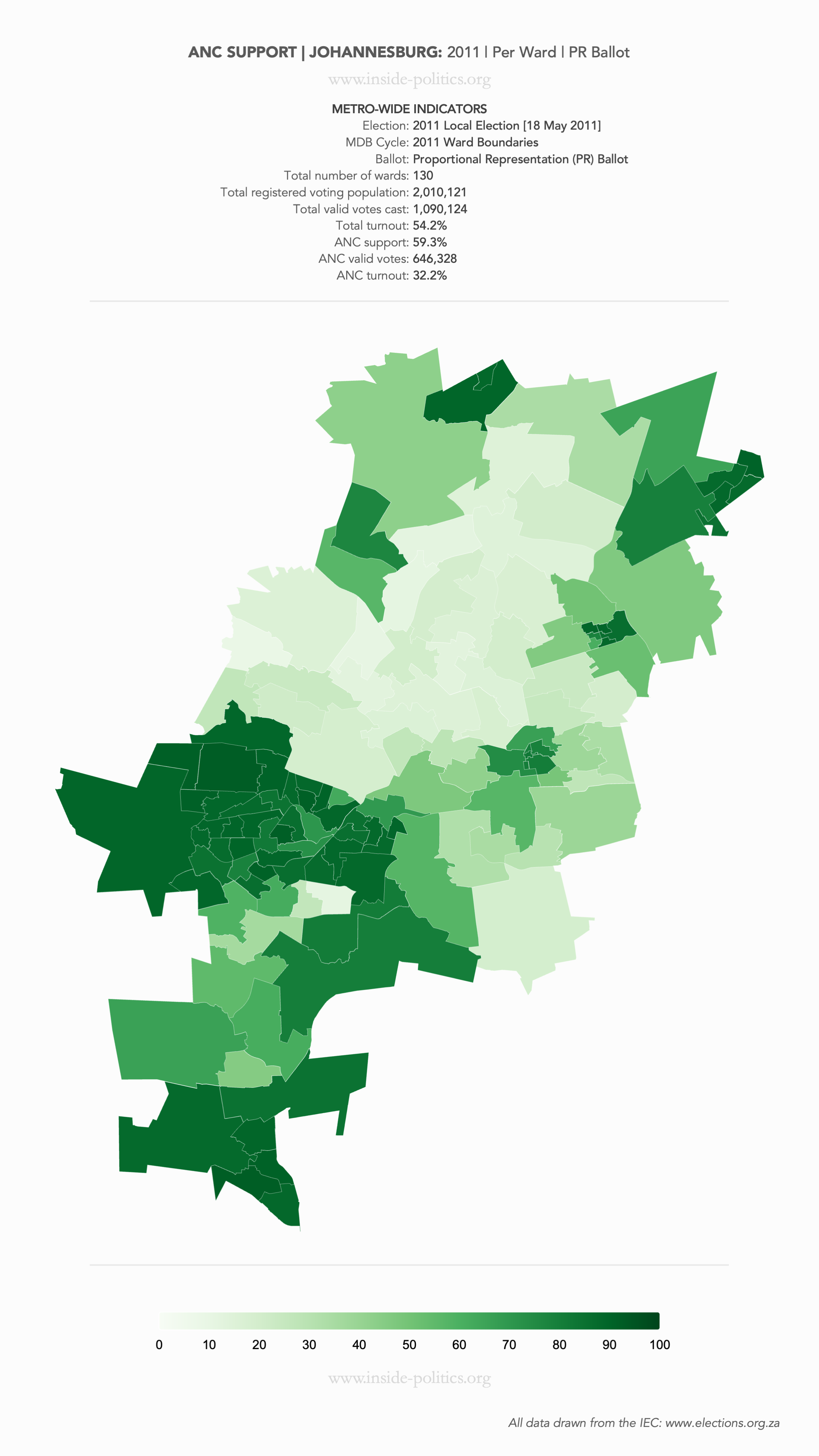 Heat Map: Johannesburg | 2011 | ANC Support by Ward