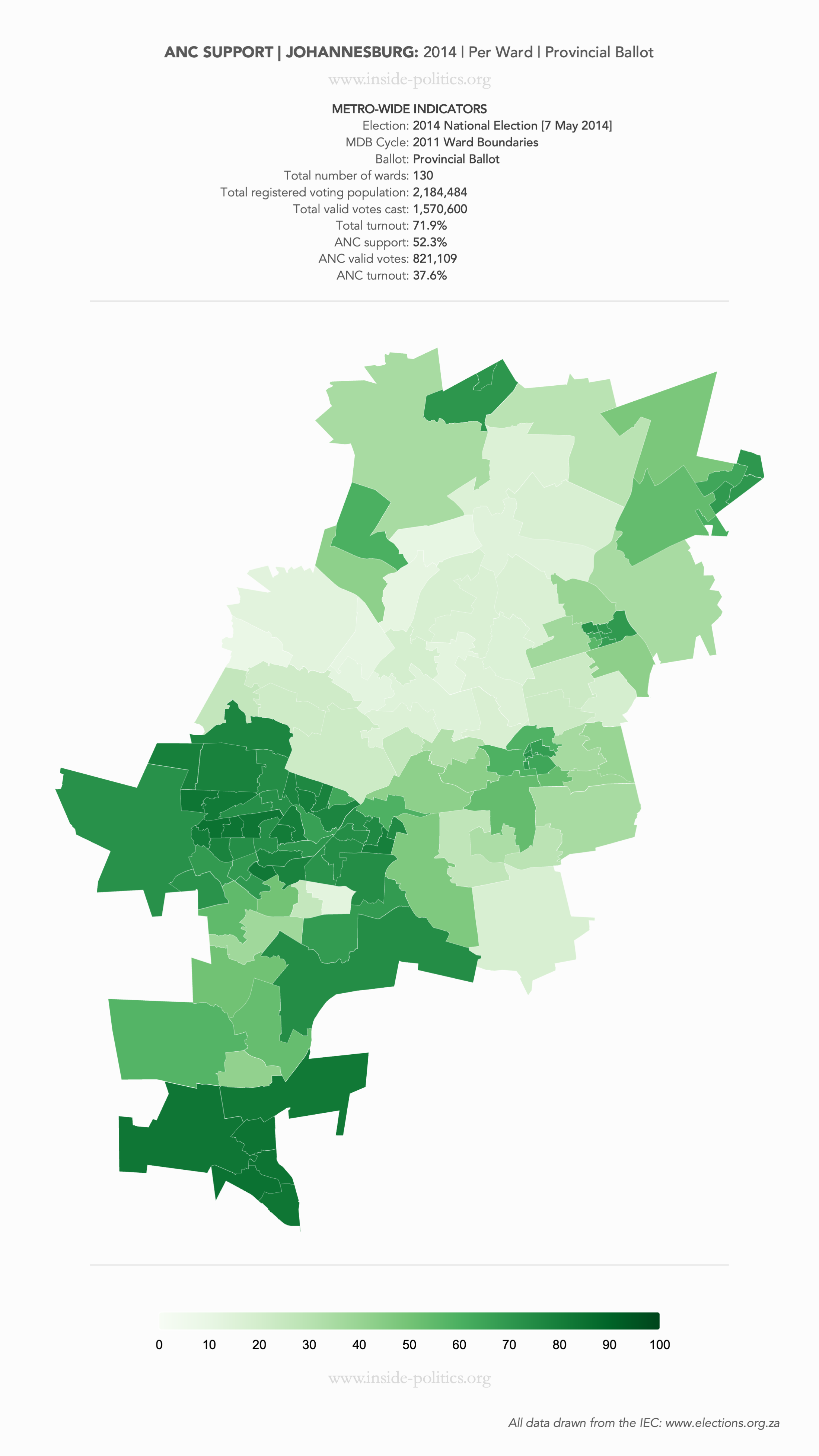 Heat Map: Johannesburg | 2014 | ANC Support by Ward