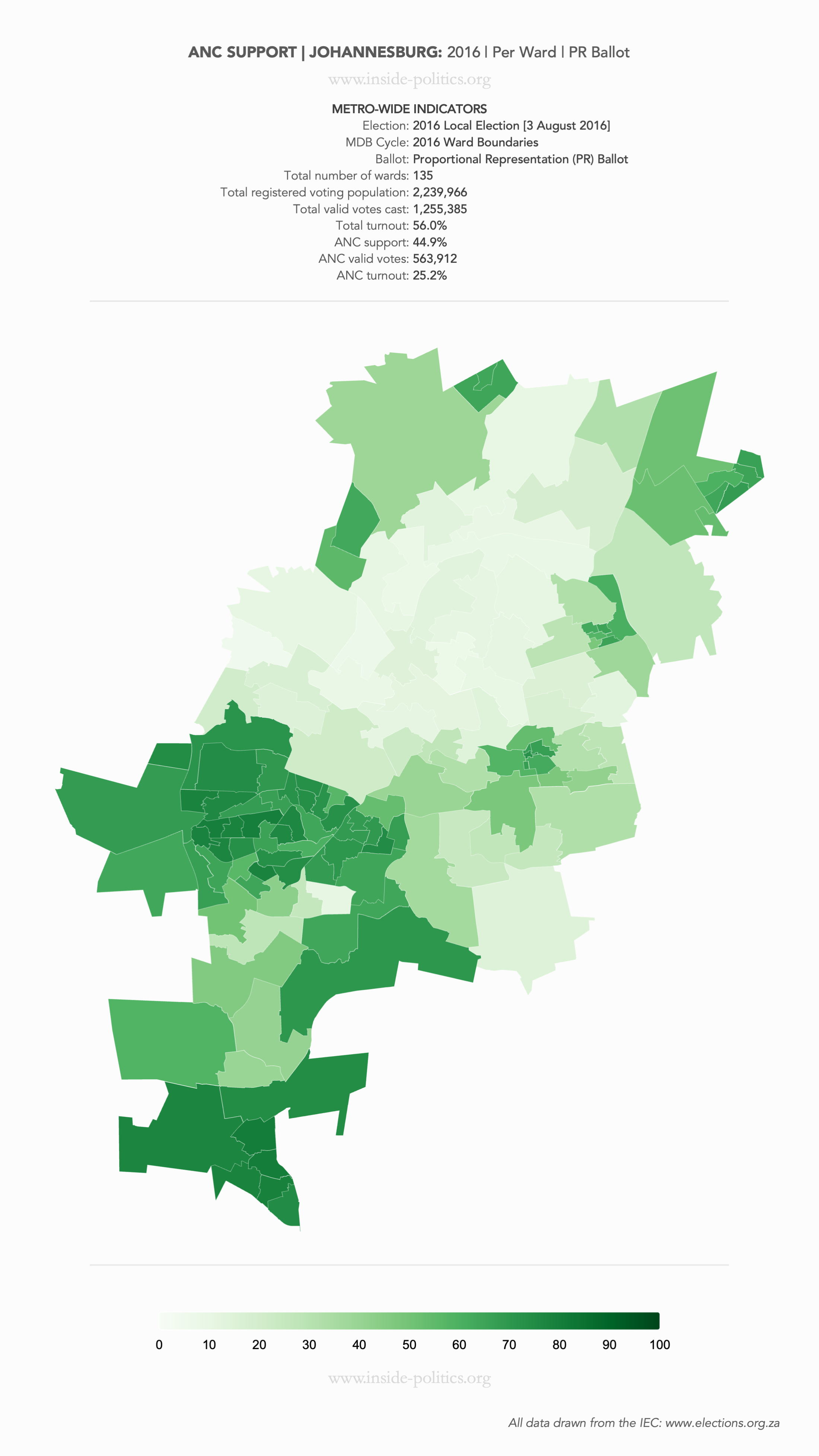 Heat Map: Johannesburg | 2016 | ANC Support by Ward