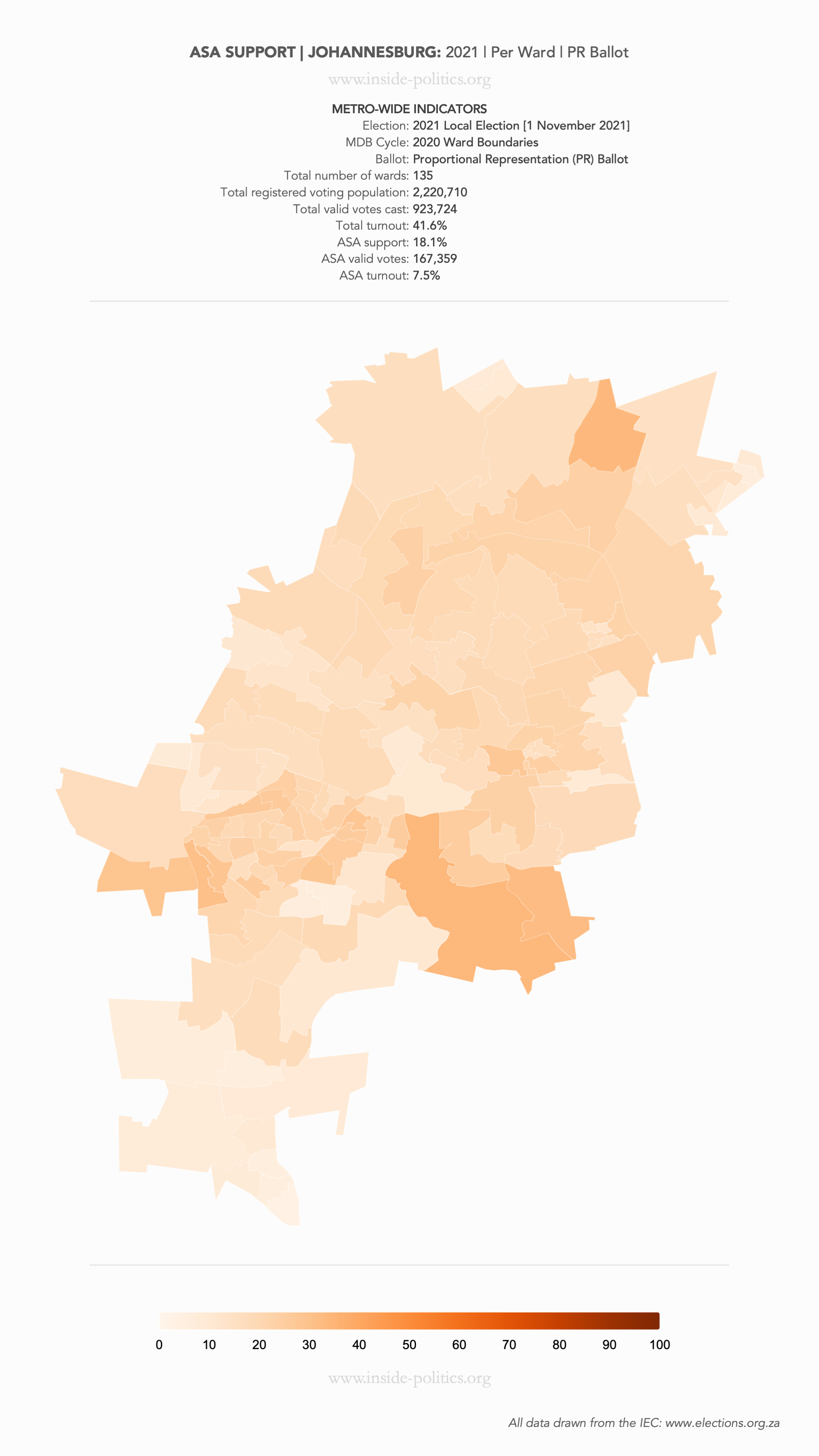 Heat Map: Johannesburg | 2021 | ASA Support by Ward