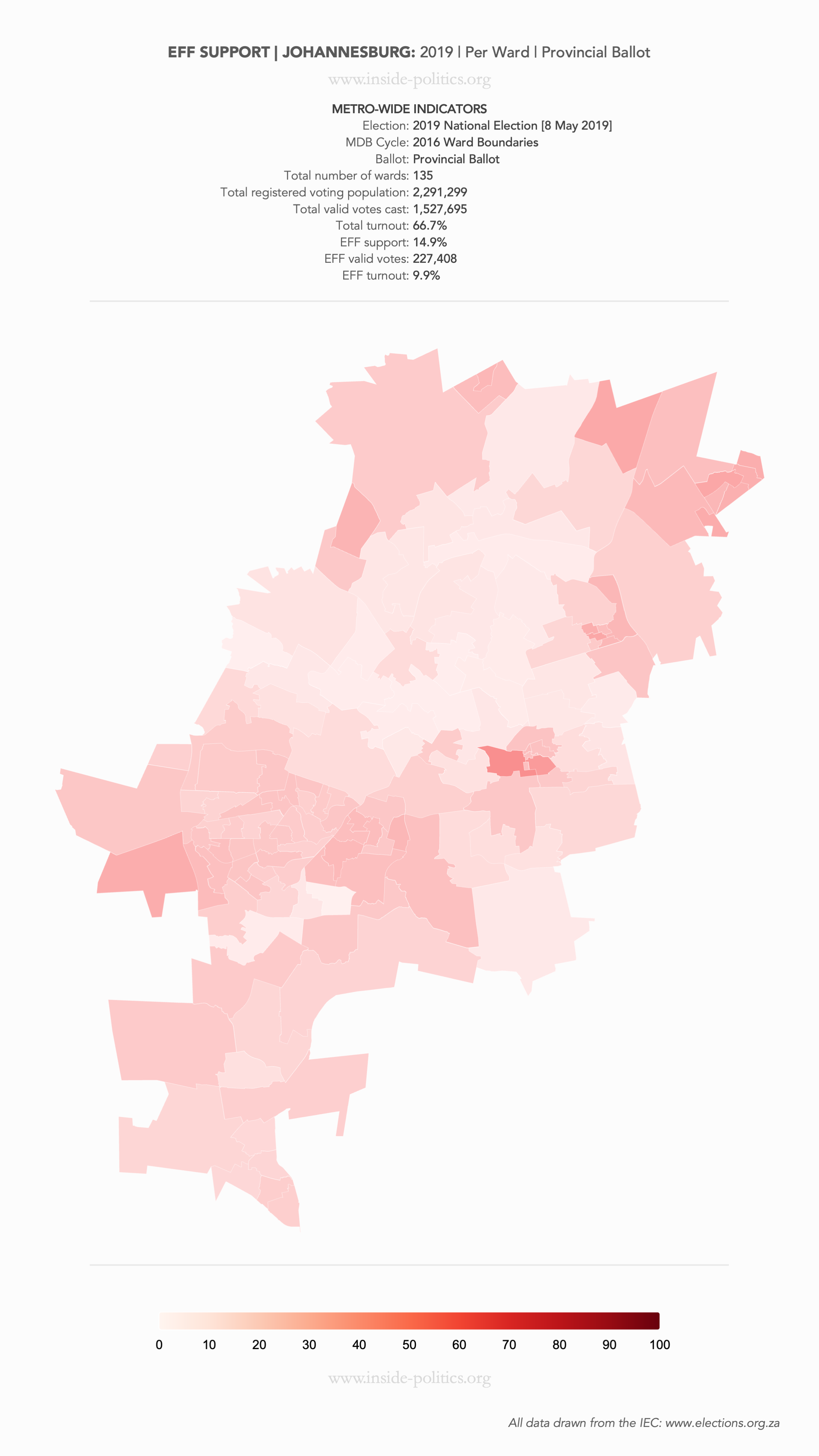 Heat Map: Johannesburg | 2019 | EFF Support by Ward