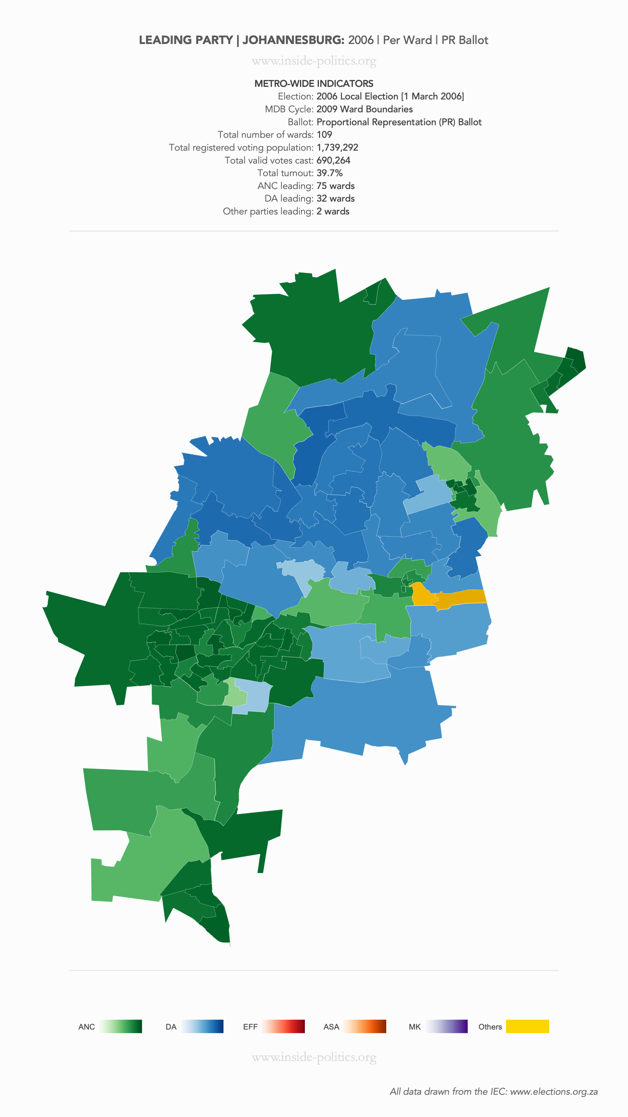 Heat Map: Johannesburg | 2006 | Leading Party Support by Ward