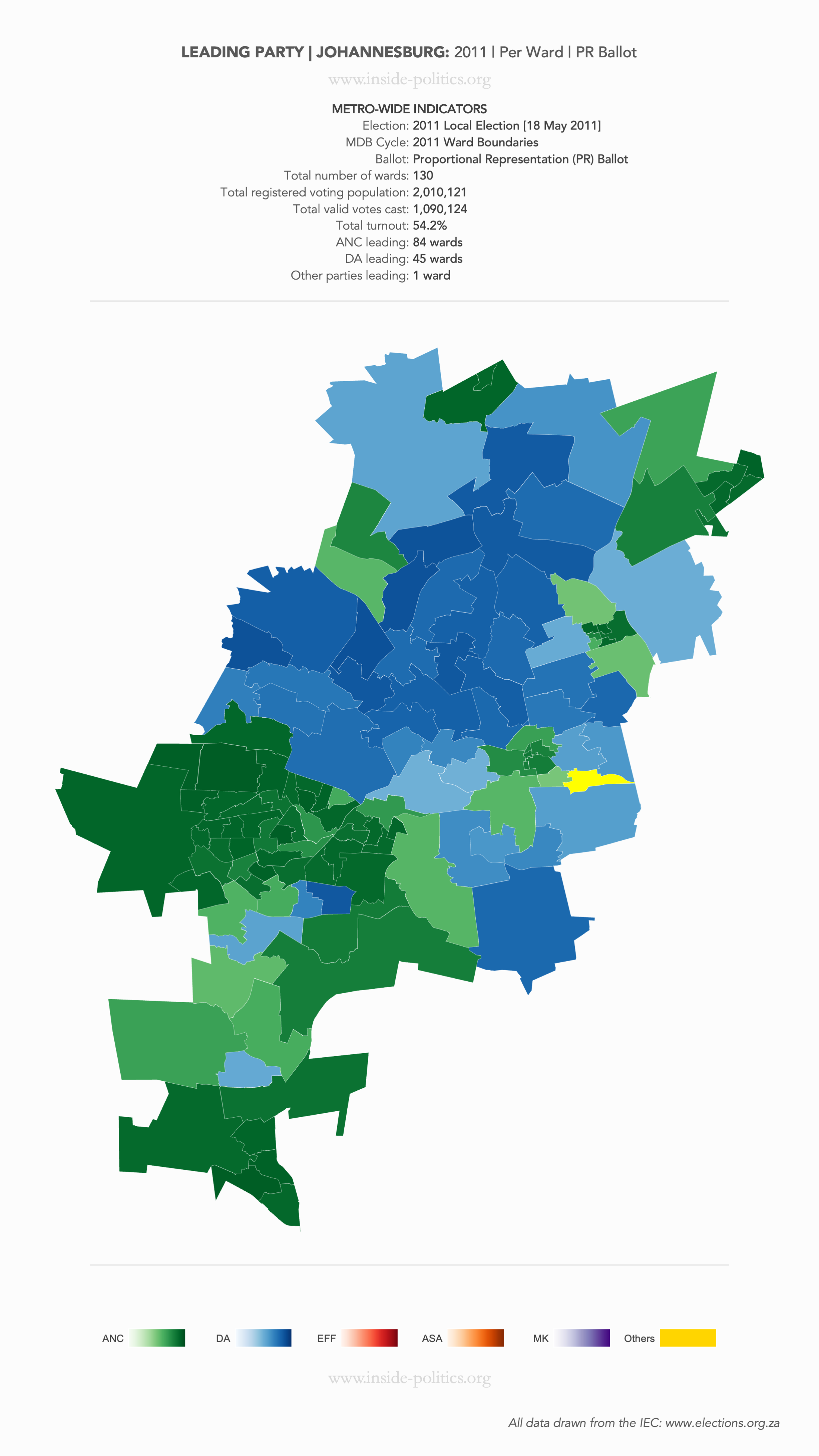 Heat Map: Johannesburg | 2011 | Leading Party Support by Ward
