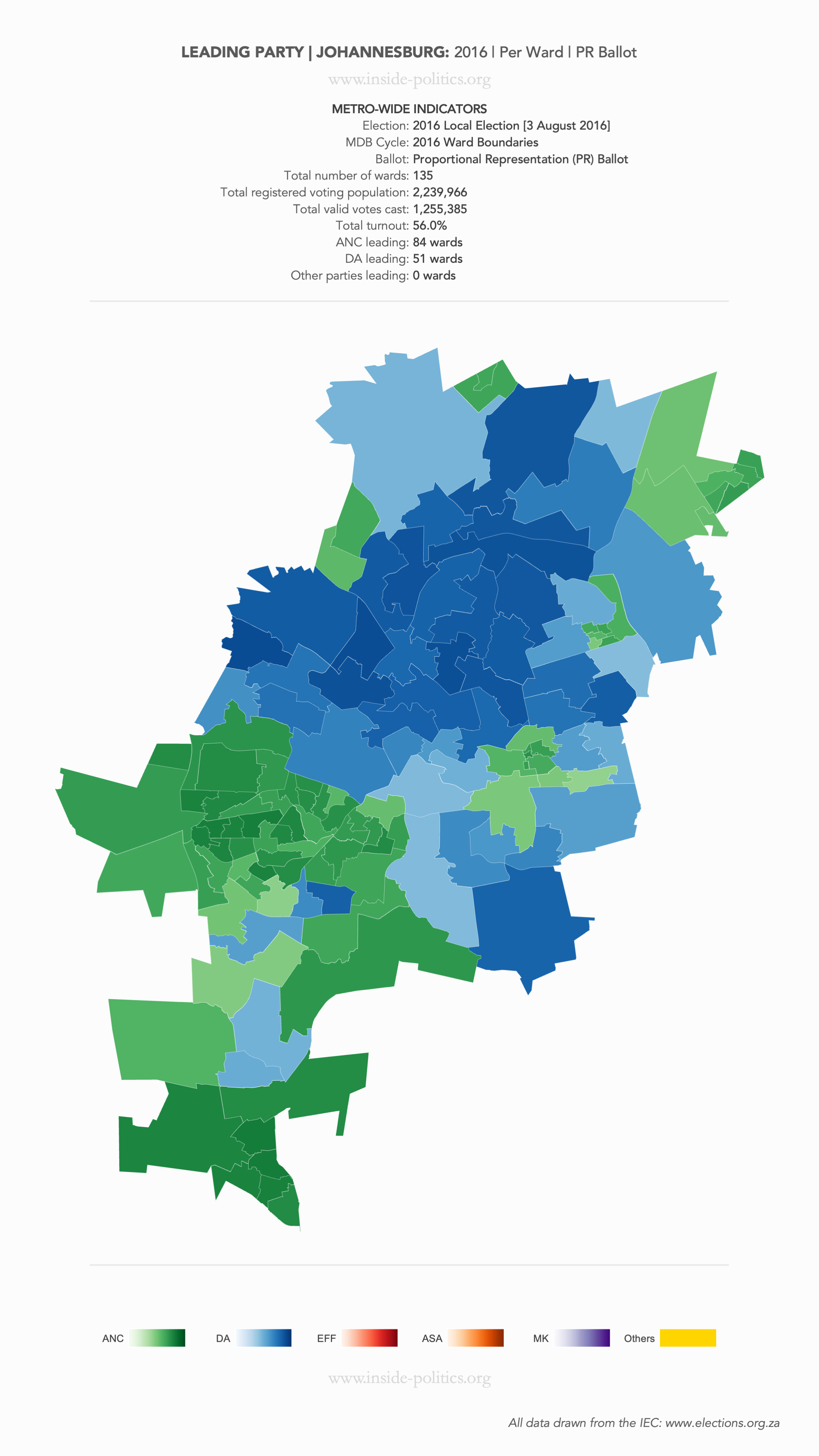 Heat Map: Johannesburg | 2016 | Leading Party Support by Ward