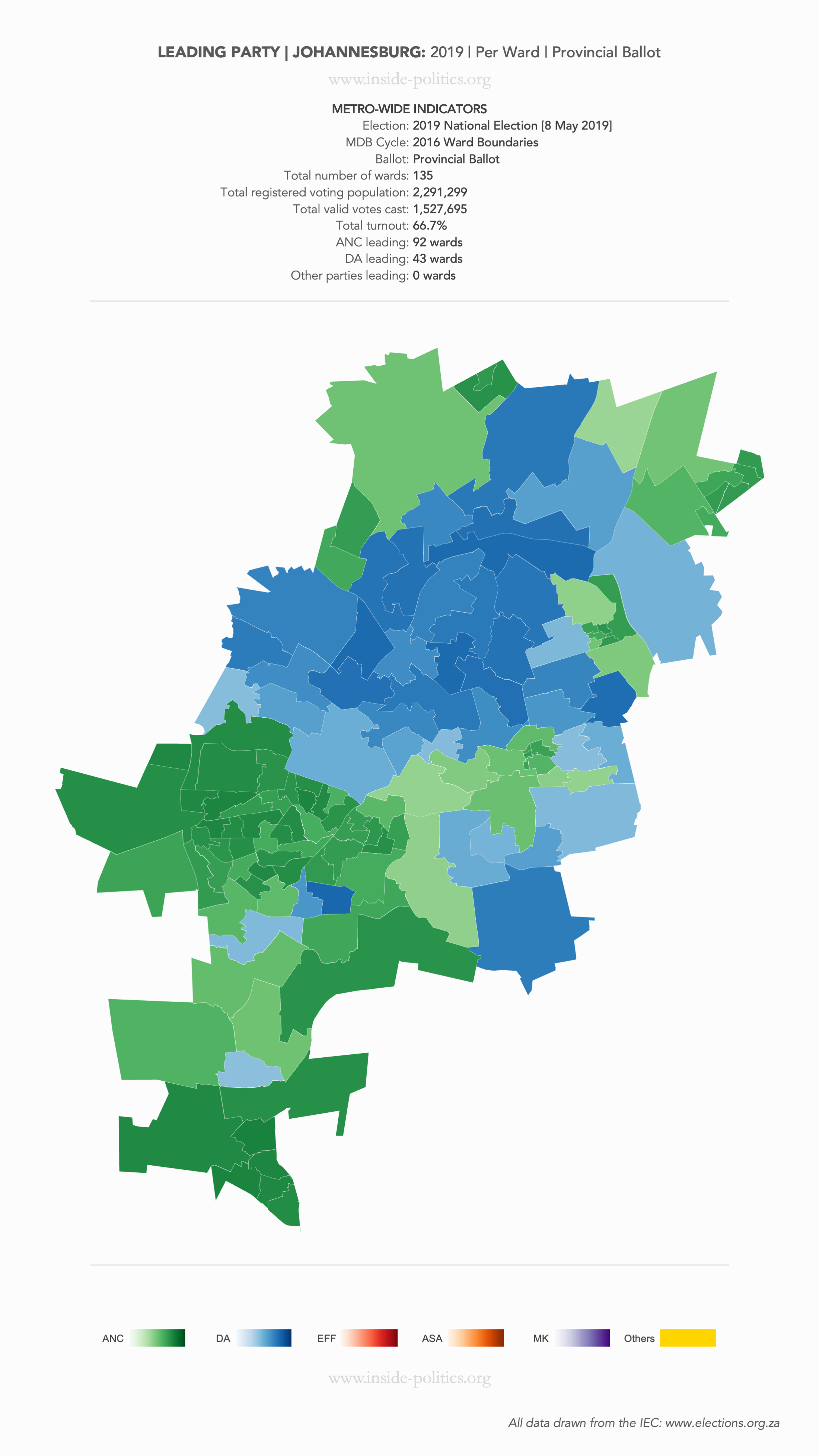 Heat Map: Johannesburg | 2019 | Leading Party Support by Ward