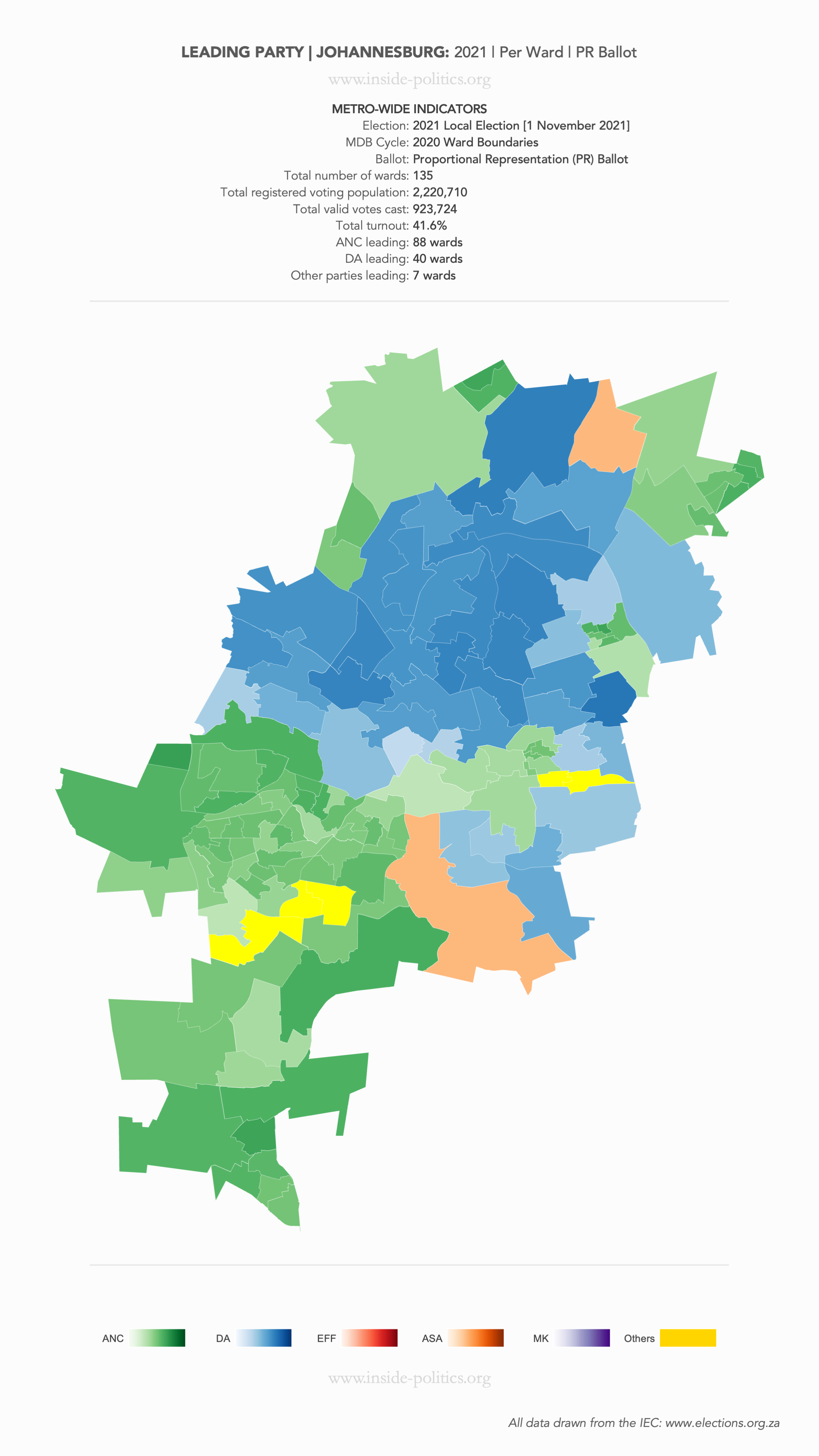 Heat Map: Johannesburg | 2021 | Leading Party Support by Ward