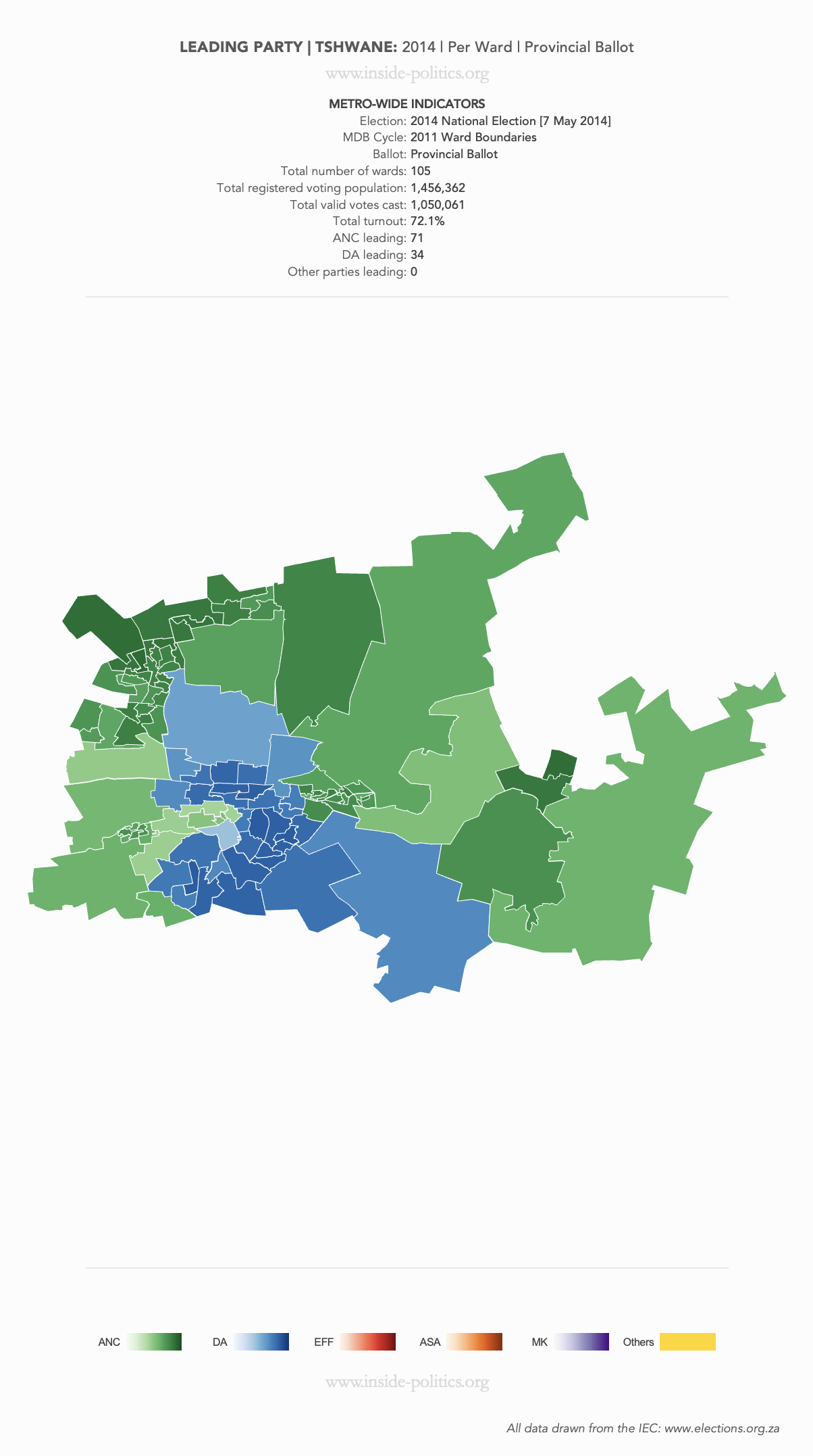 Heat Map: Tshwane | 2014 | Leading Party Support by Ward
