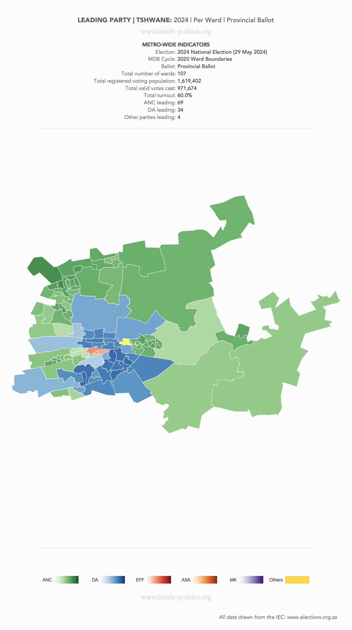 Heat Map: Tshwane | 2024 | Leading Party Support by Ward