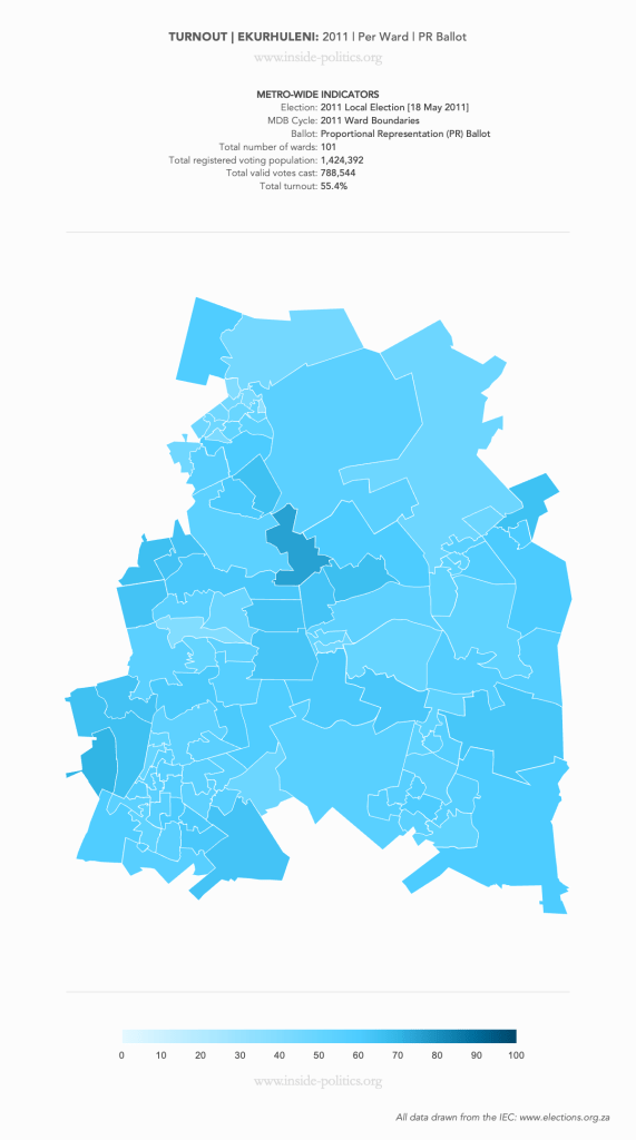 These are a set of what is commonly referred to as “Heat Maps”. The more technical name is Choropleth Maps. They are designed to use a colour scale, to demonstrate the intensity of one particular indicator – for example: party support per ward: the darker the colour in a ward, the higher the support. However, any indicator – turnout, registered voters, losses and gains, almost anything – can be mapped this way.
