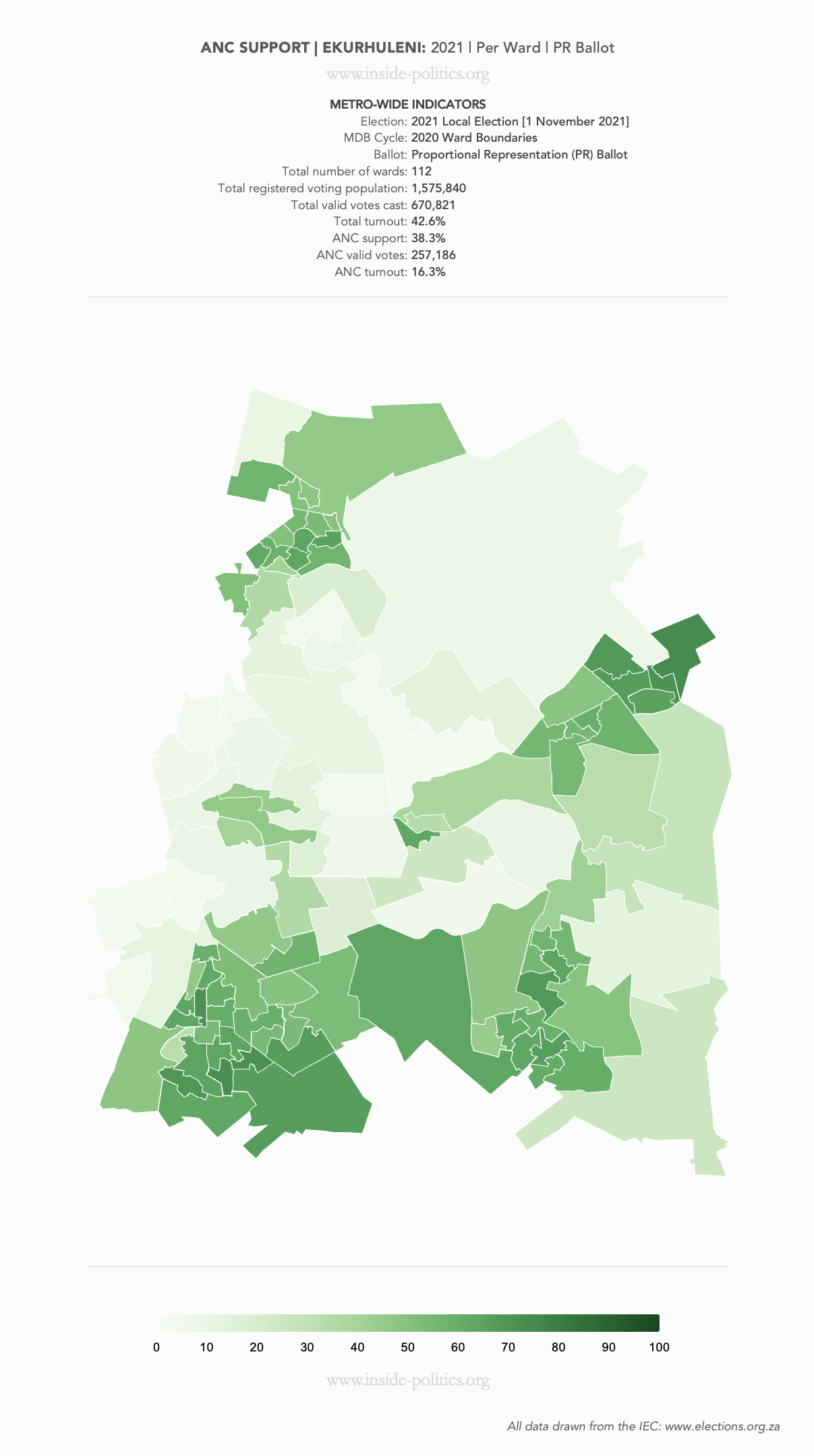 Heat Map: Ekurhuleni | 2021 | ANC Support by Ward