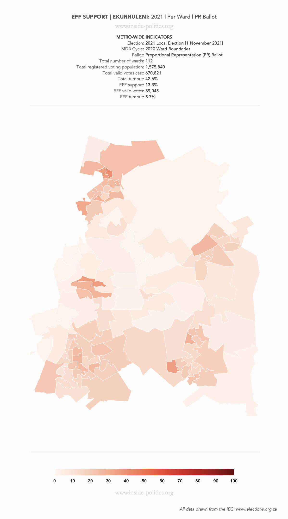 Heat Map: Ekurhuleni | 2021 | EFF Support by Ward