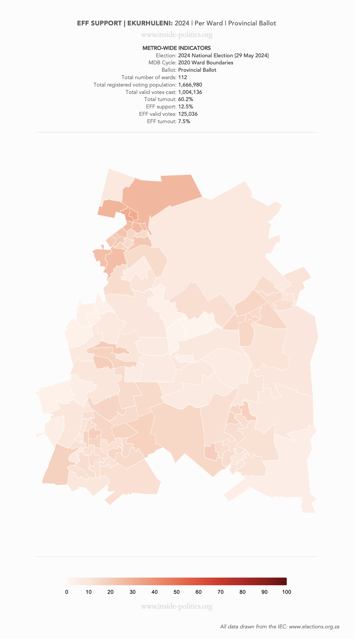 Heat Map: Ekurhuleni | 2024 | EFF Support by Ward