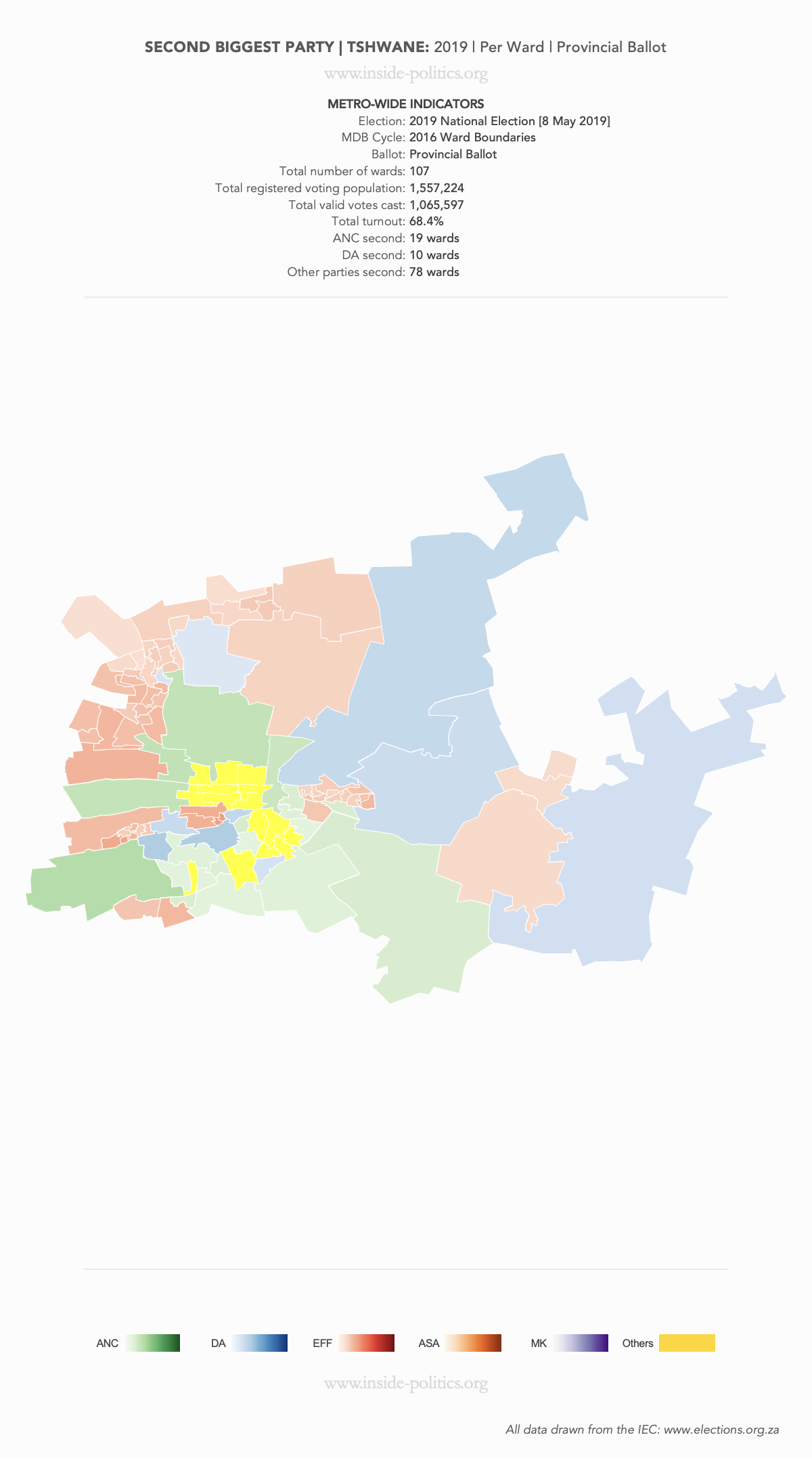 Heat Map: Tshwane | 2019 | Second Biggest Party by Ward