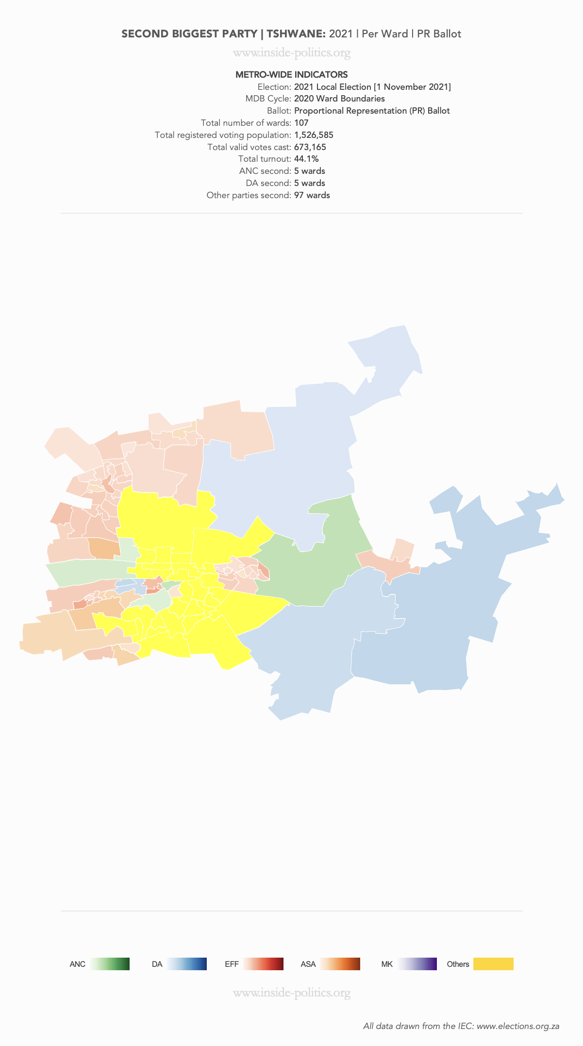 Heat Map: Tshwane | 2021 | Second Biggest Party by Ward
