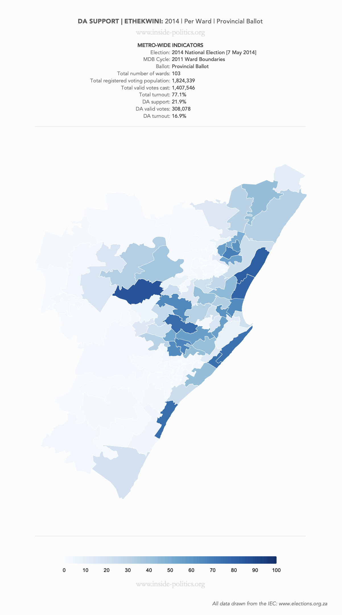 Heat Map: eThekwini | 2014 | DA Support by Ward