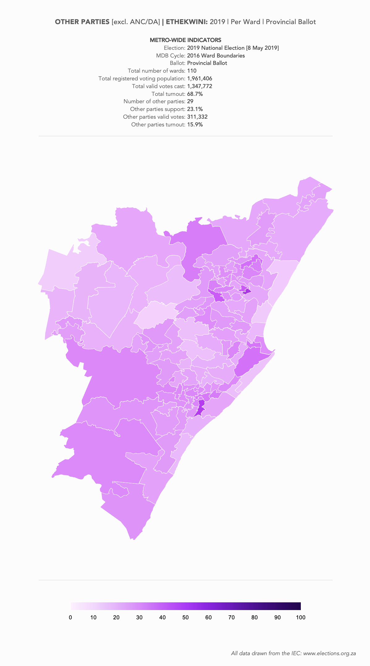 Heat Map: eThekwini | 2019 | Other Parties Support by Ward