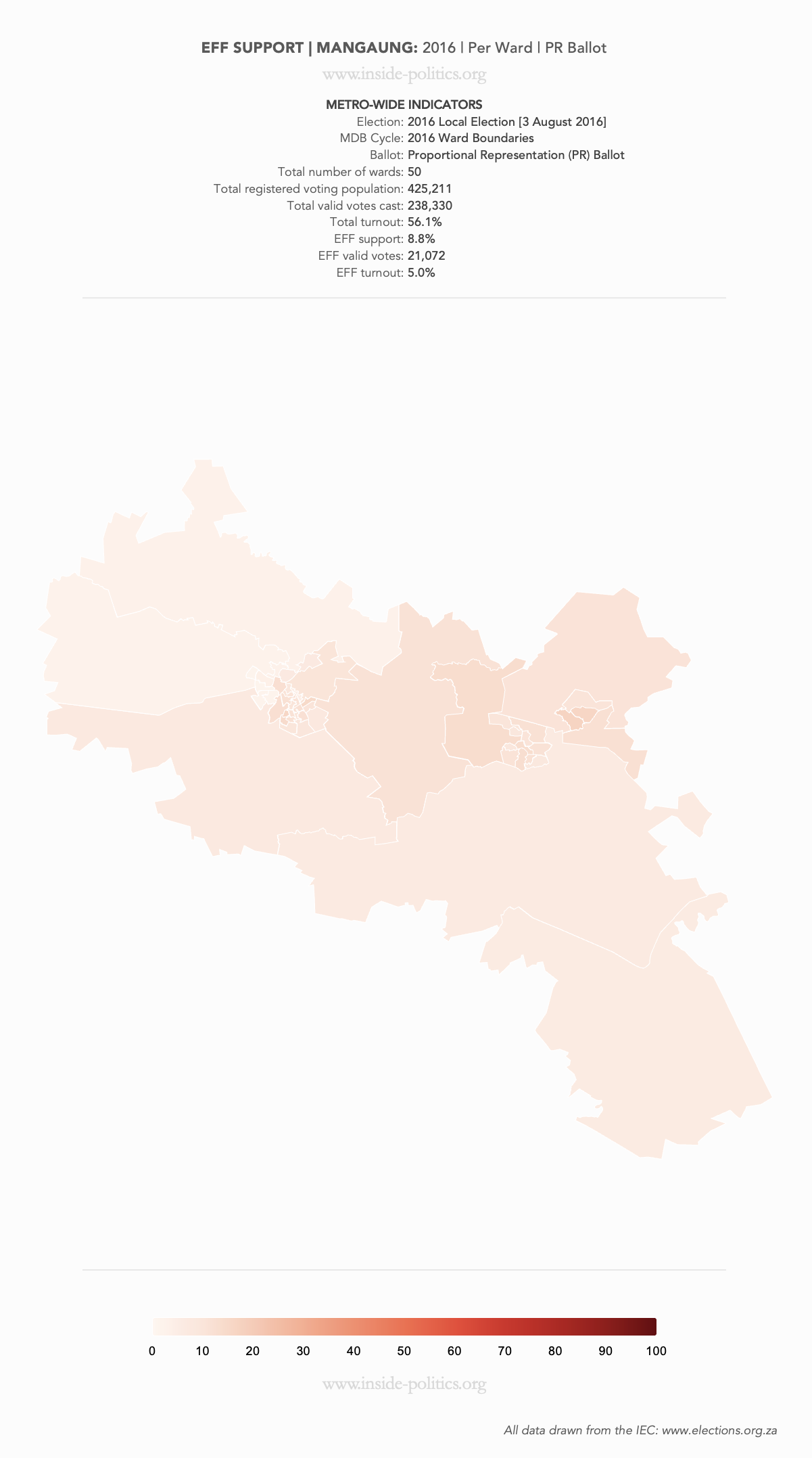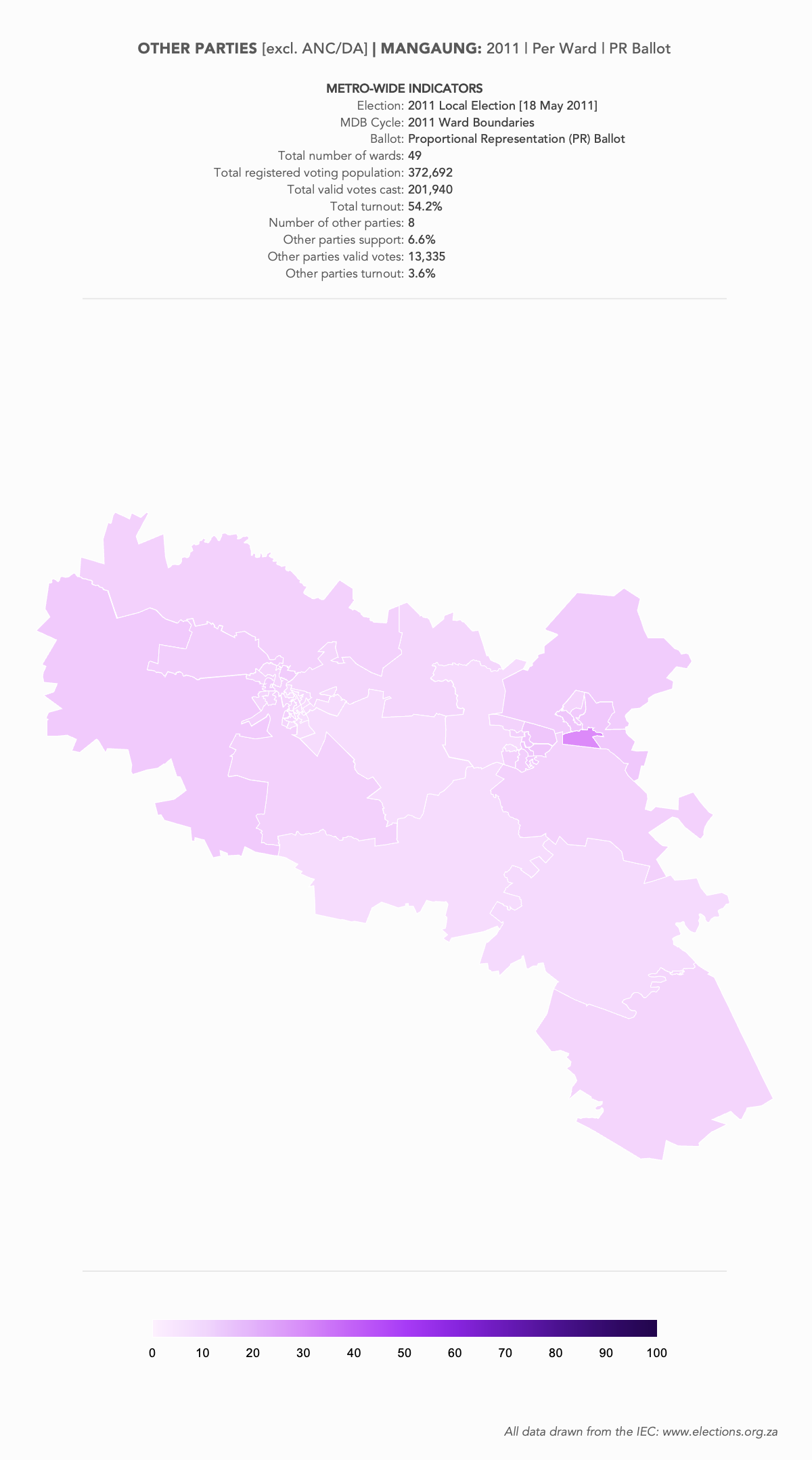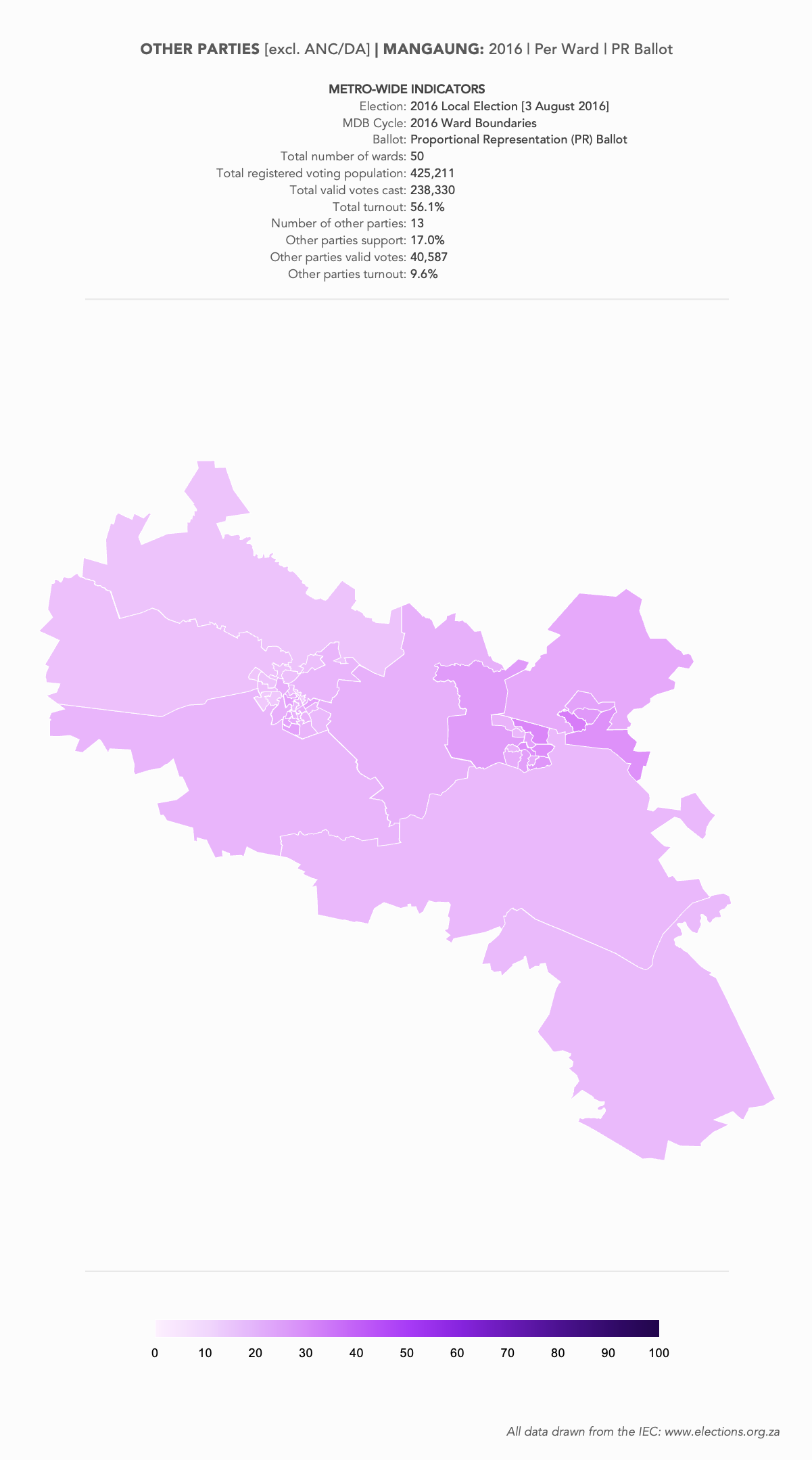 These are a set of what is commonly referred to as “Heat Maps”. The more technical name is Choropleth Maps. They are designed to use a colour scale, to demonstrate the intensity of one particular indicator – for example: party support per ward: the darker the colour in a ward, the higher the support. However, any indicator – turnout, registered voters, losses and gains, almost anything – can be mapped this way.