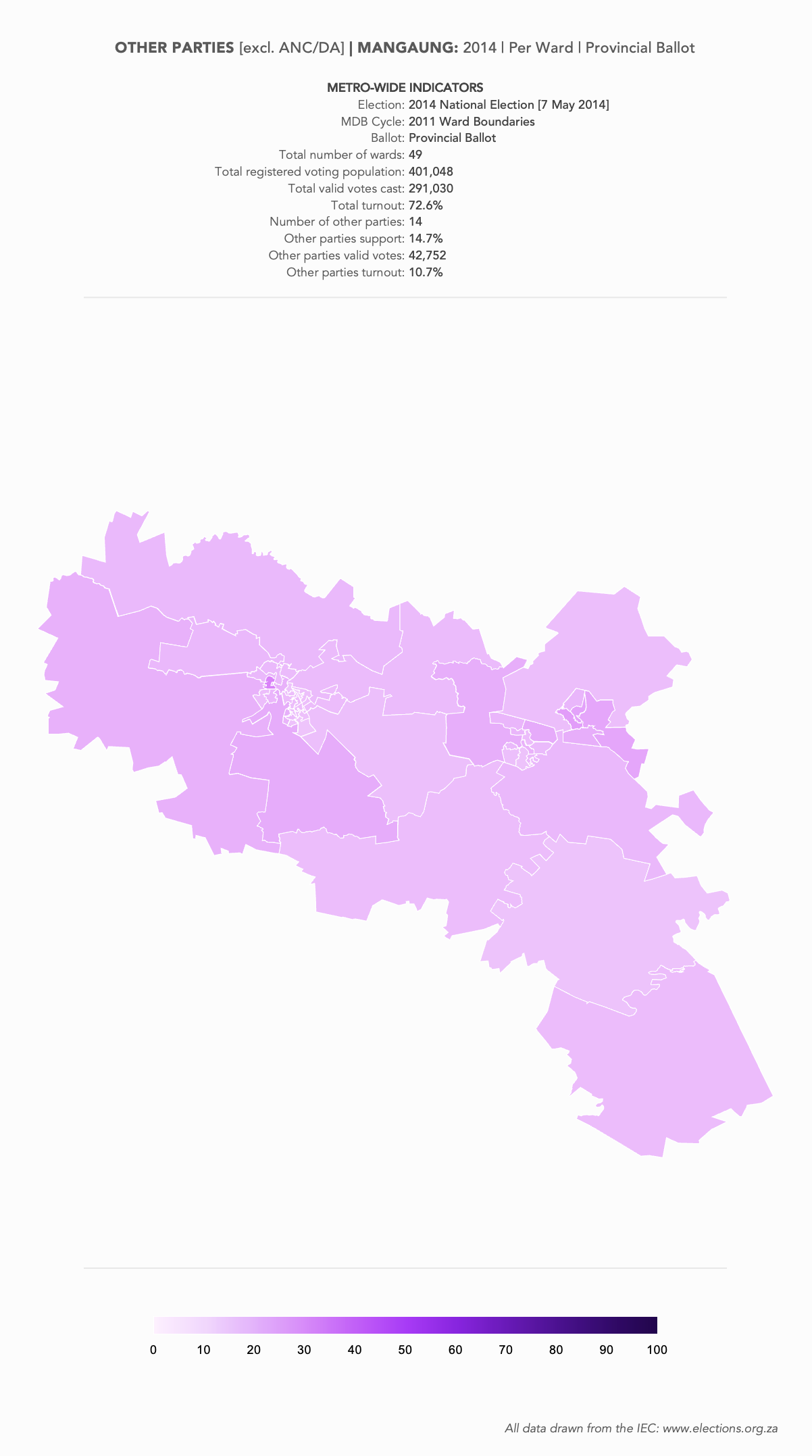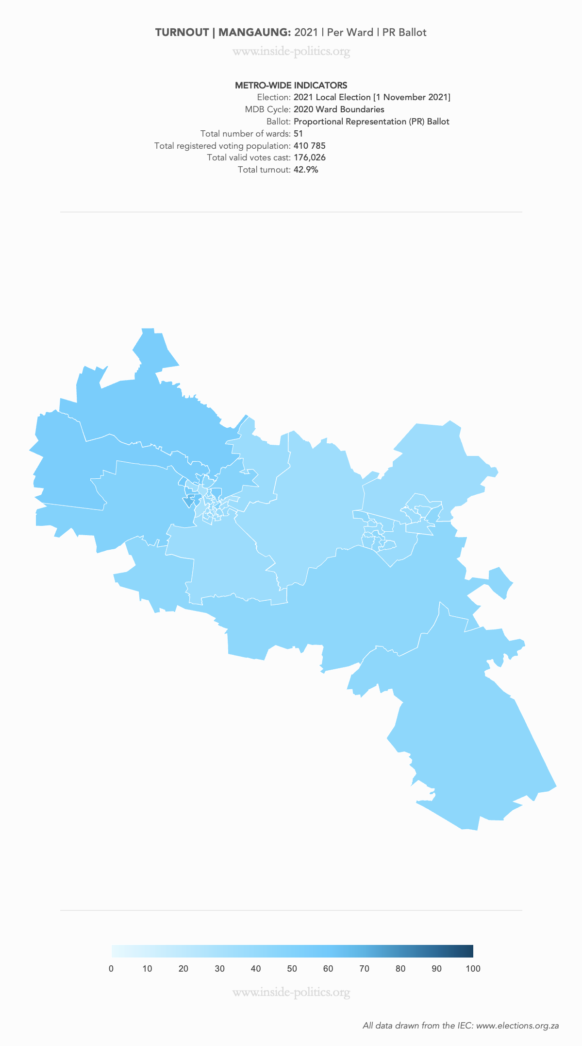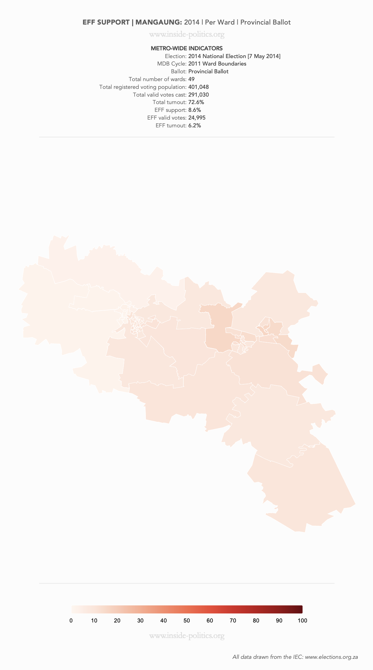These are a set of what is commonly referred to as “Heat Maps”. The more technical name is Choropleth Maps. They are designed to use a colour scale, to demonstrate the intensity of one particular indicator – for example: party support per ward: the darker the colour in a ward, the higher the support. However, any indicator – turnout, registered voters, losses and gains, almost anything – can be mapped this way.