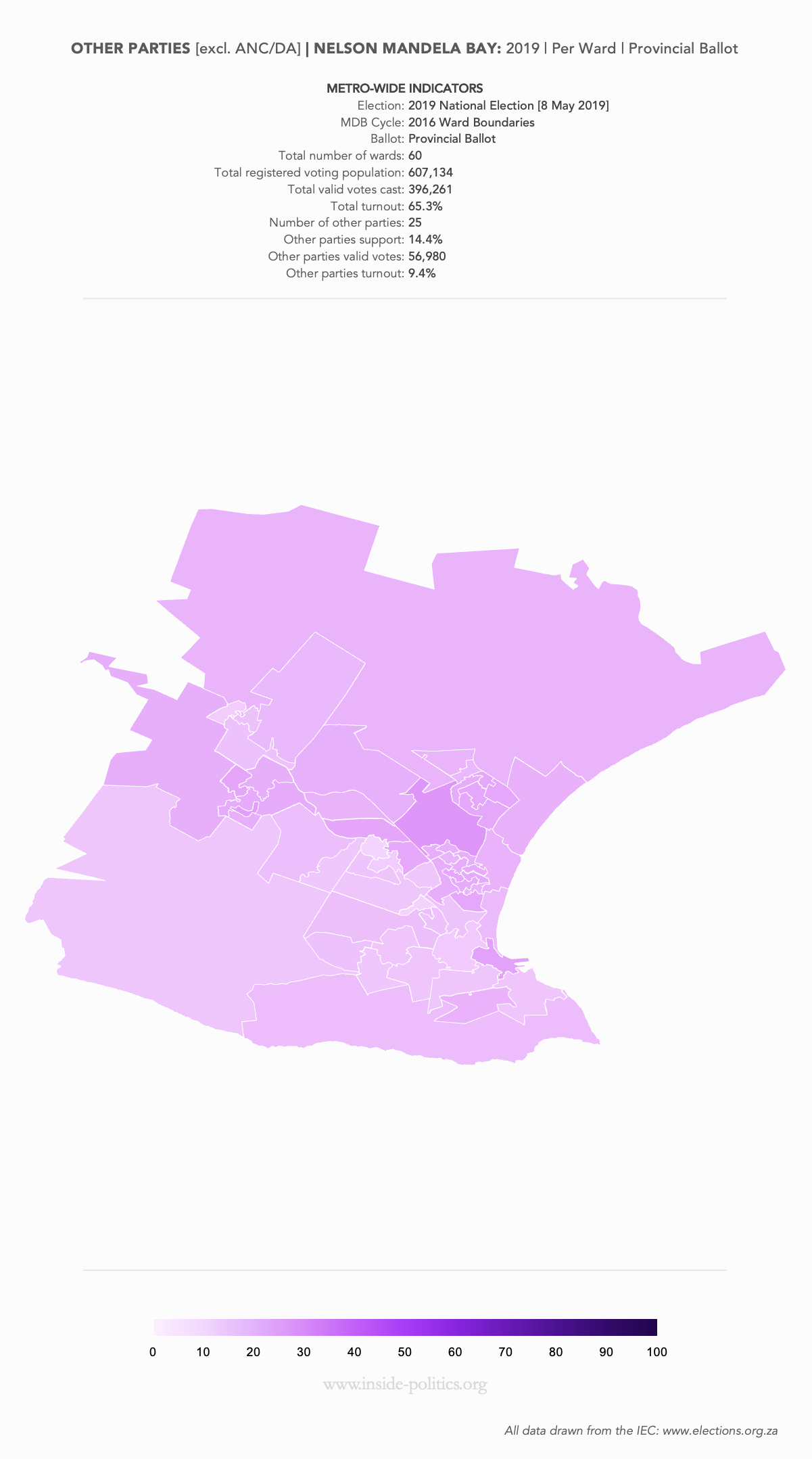 Heat Map: Nelson Mandela Bay | 2019 | Other Parties Support by Ward