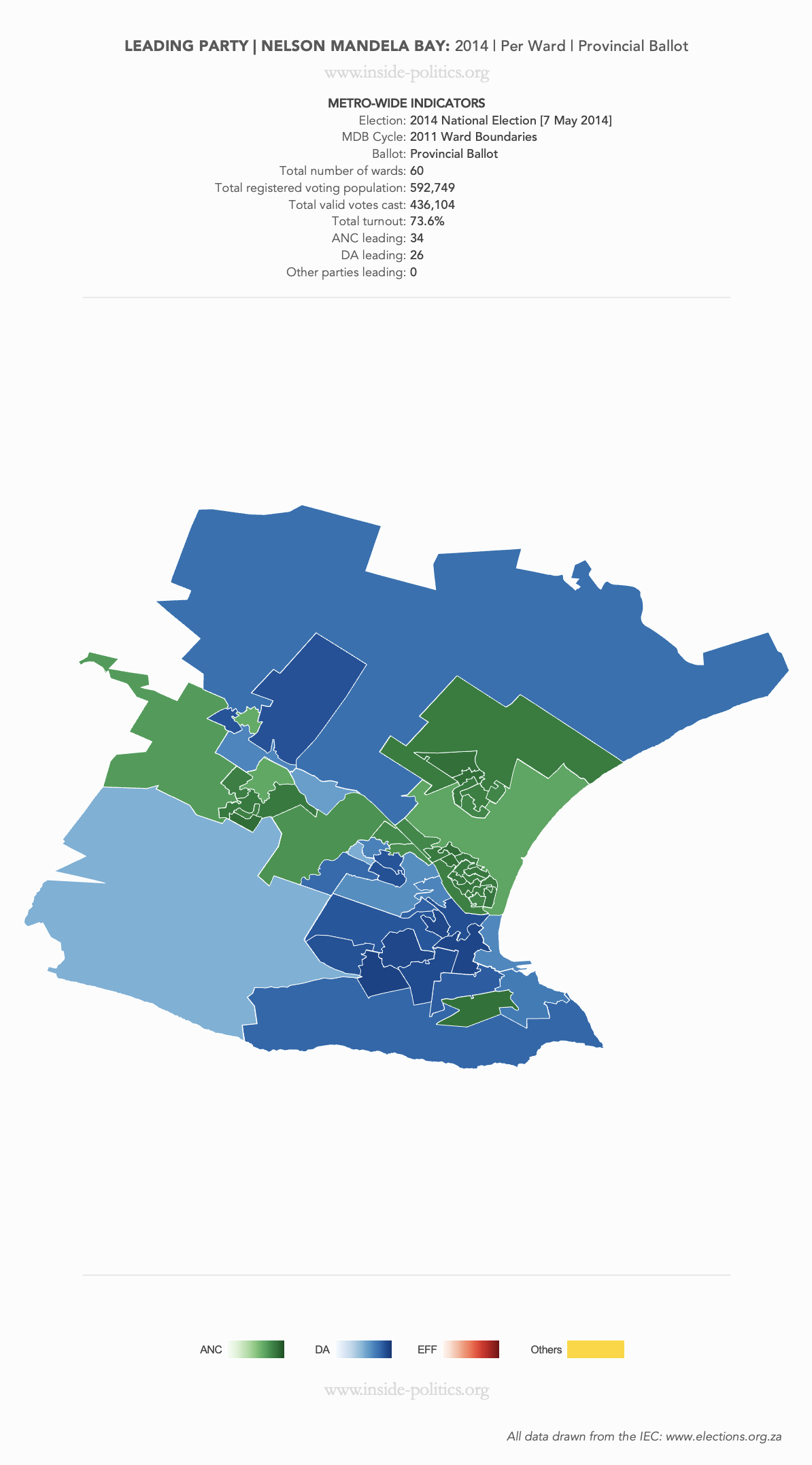 Heat Map: Nelson Mandela Bay | 2014 | Leading Party Support by Ward