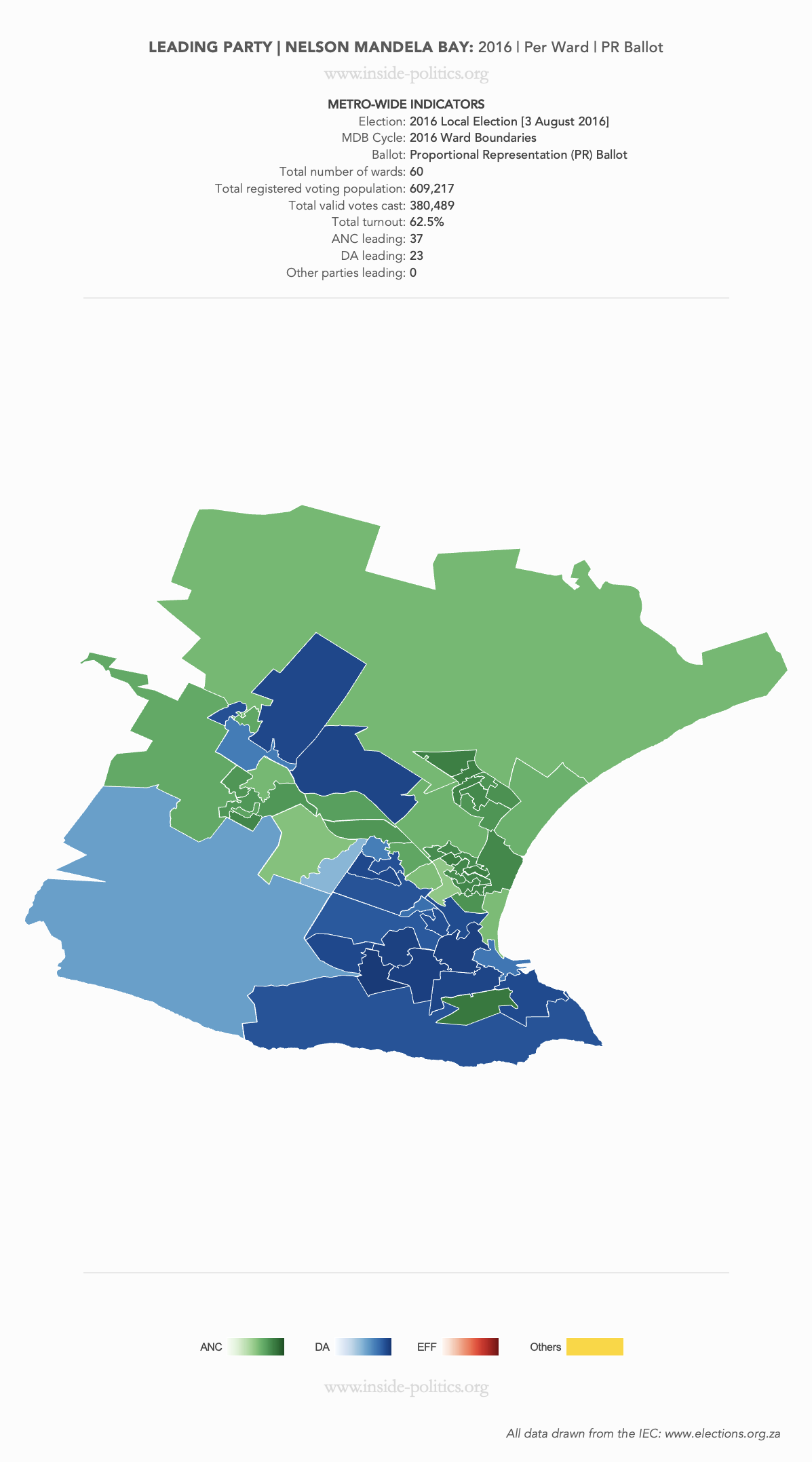 Heat Map: Nelson Mandela Bay | 2016 | Leading Party Support by Ward