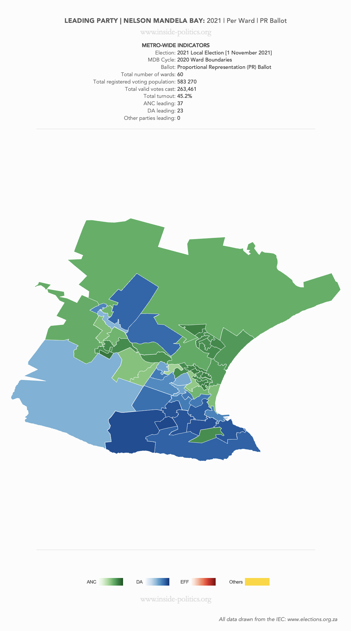 Heat Map: Nelson Mandela Bay | 2021 | Leading Party Support by Ward