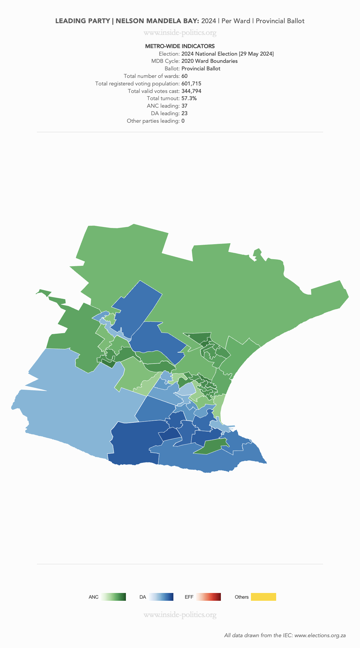 Heat Map: Nelson Mandela Bay | 2024 | Leading Party Support by Ward