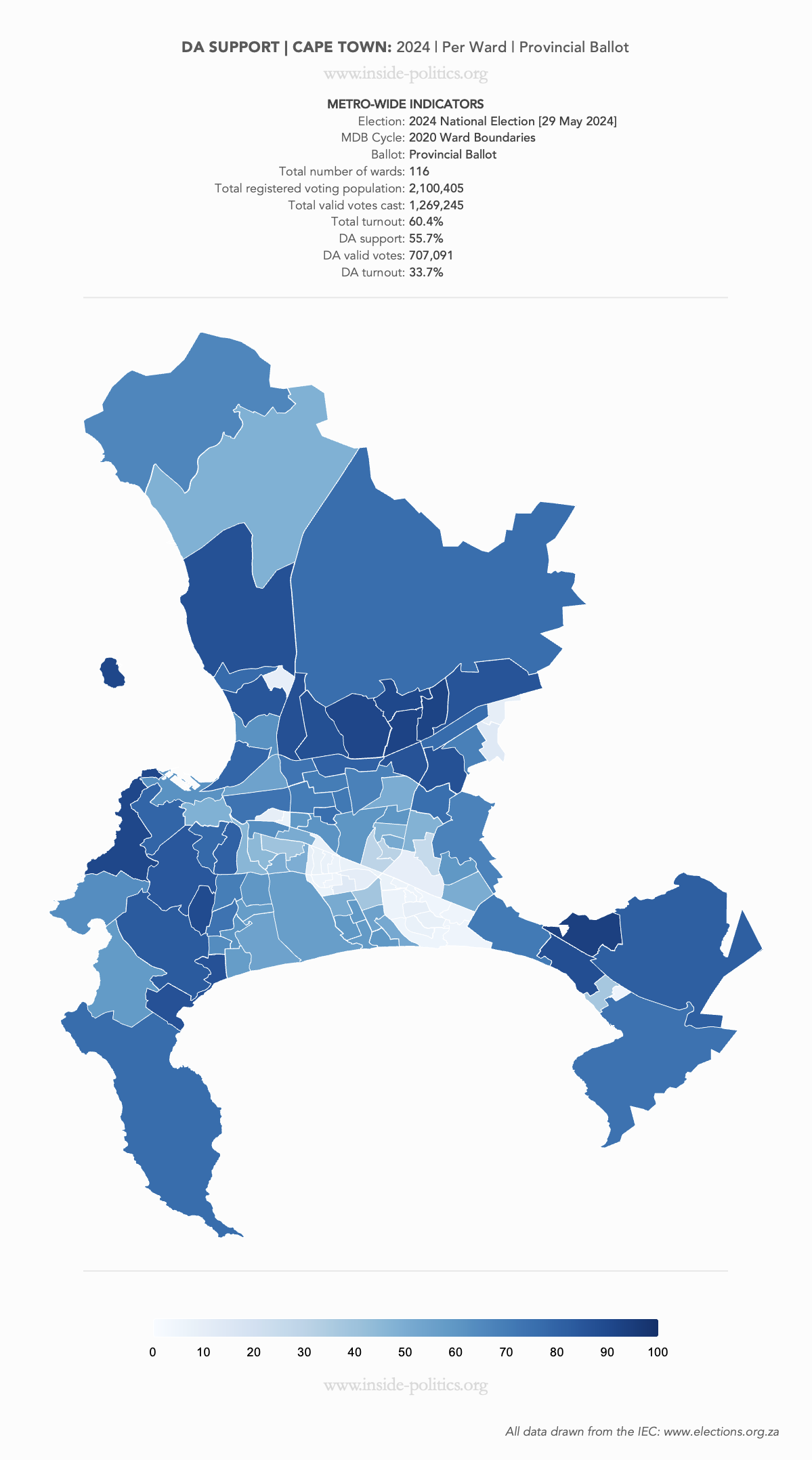 Heat Map: Cape Town | 2024 | DA Support by Ward