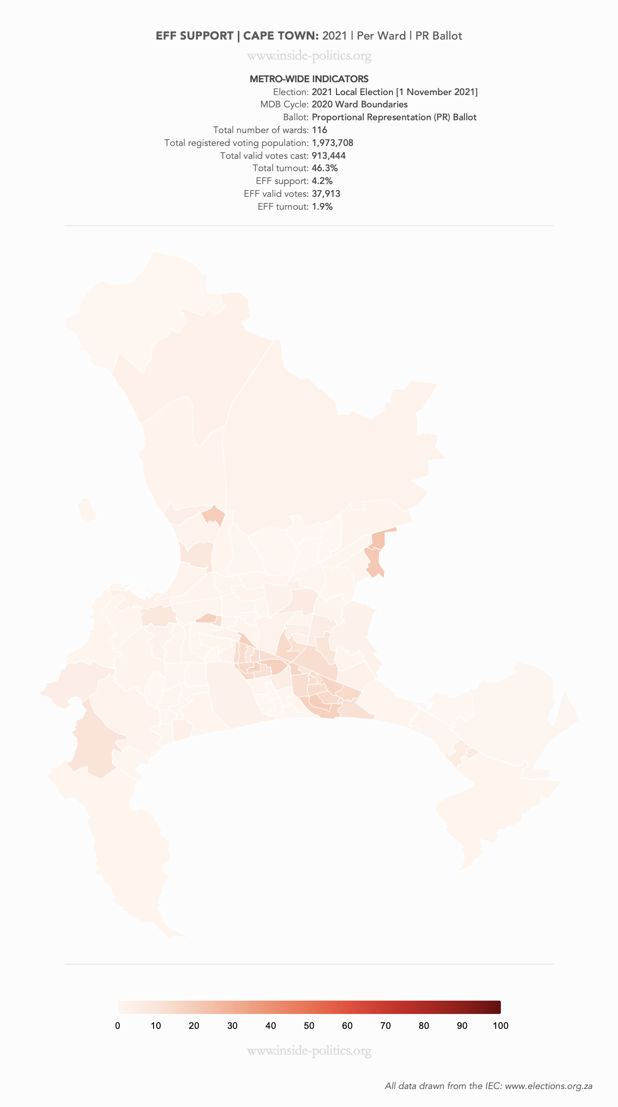Heat Map: Cape Town | 2021 | EFF Support by Ward