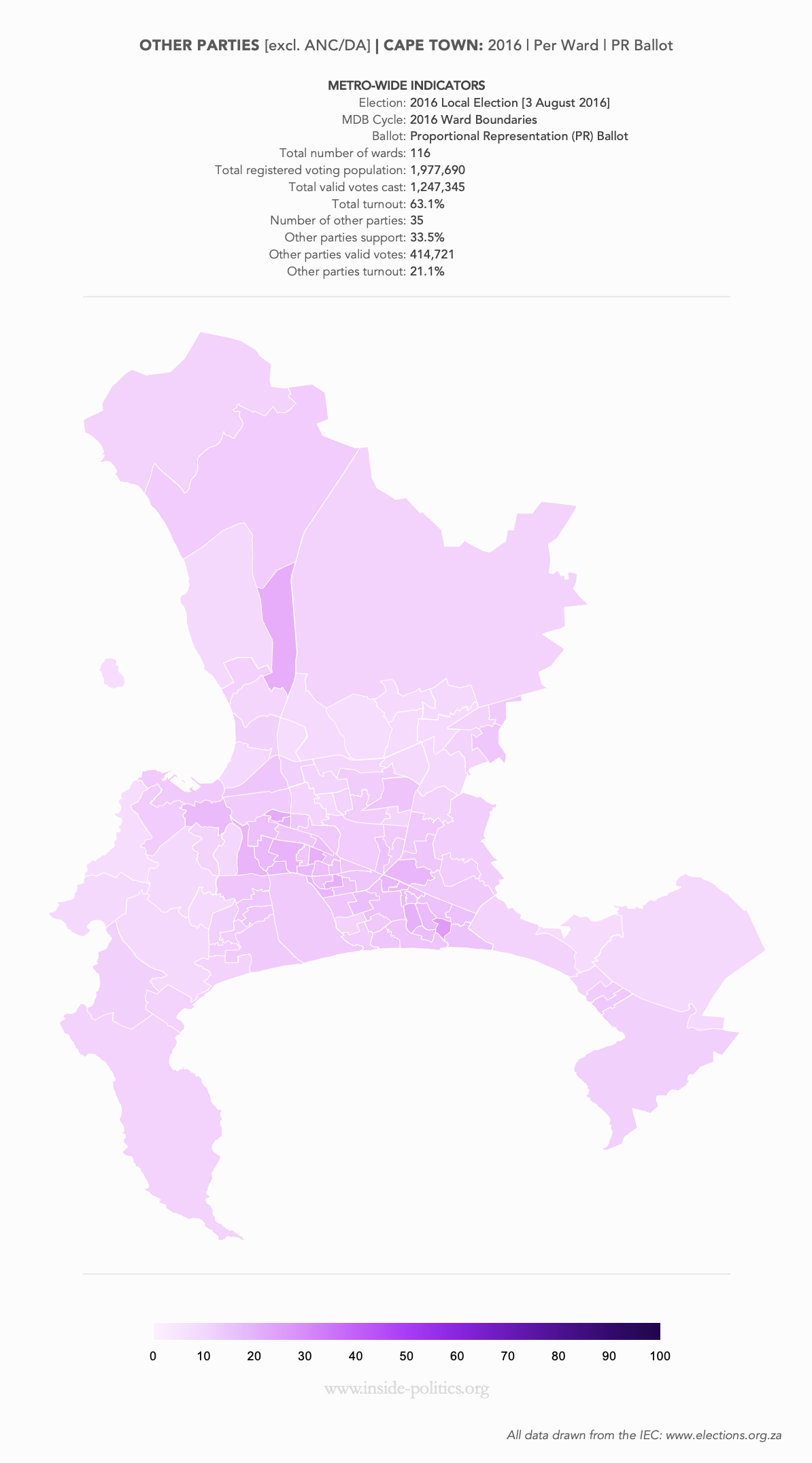 Heat Map: Cape Town | 2016 | Other Parties Support by Ward