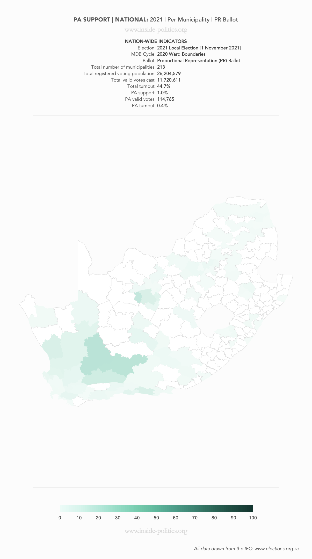 Heat Map: National | 2021 | PA Support by Municipality