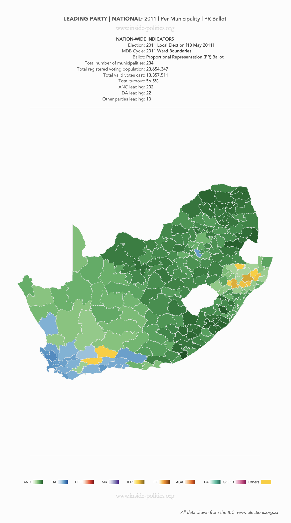 Heat Map: National | 2011 | Leading Party Support by Municipality