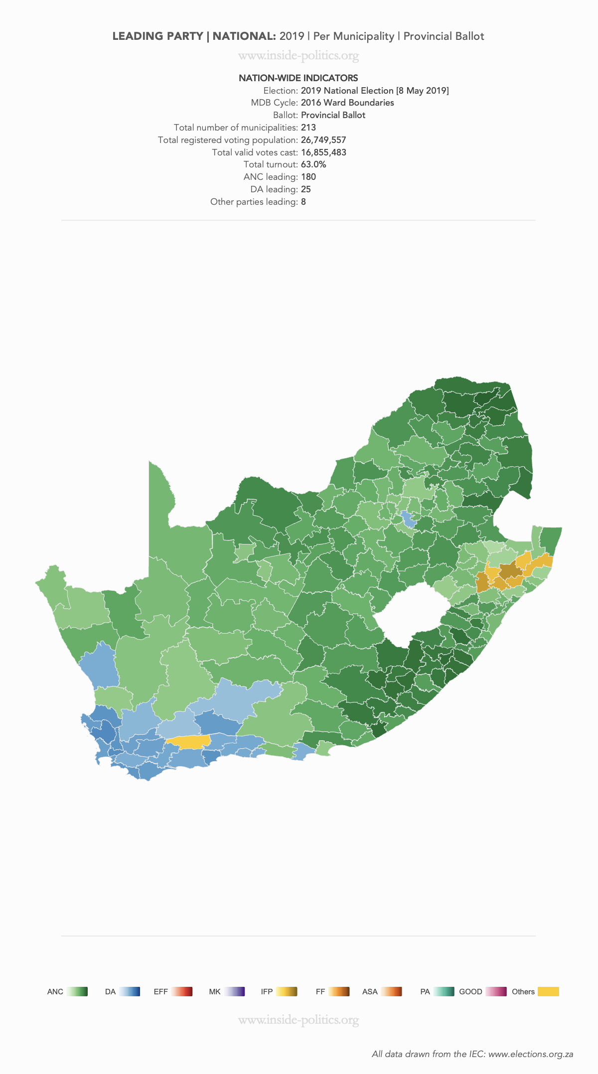 Heat Map: National | 2019 | Leading Party Support by Municipality