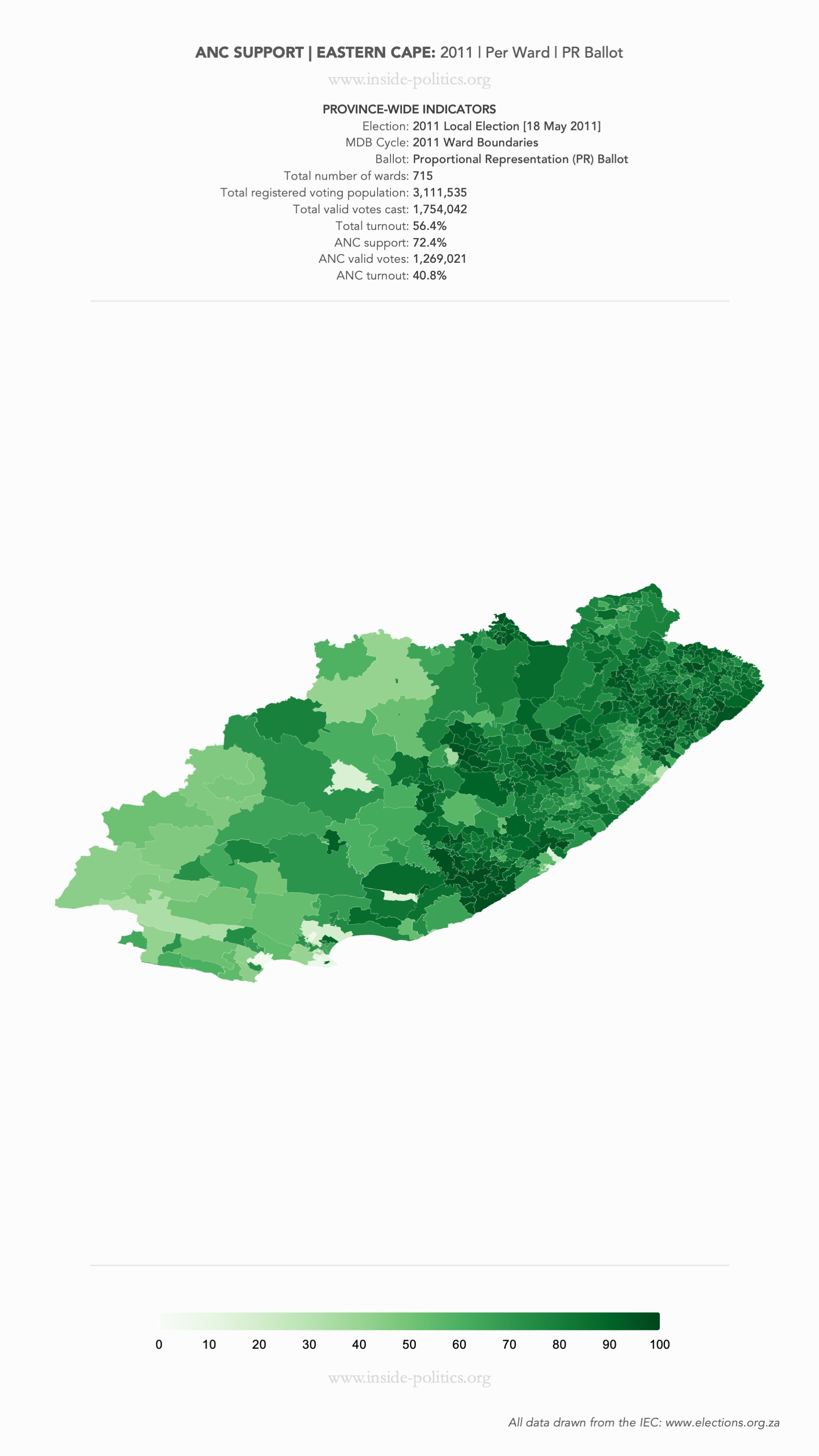 Heat Map: Eastern Cape | 2011 | ANC Support by Ward