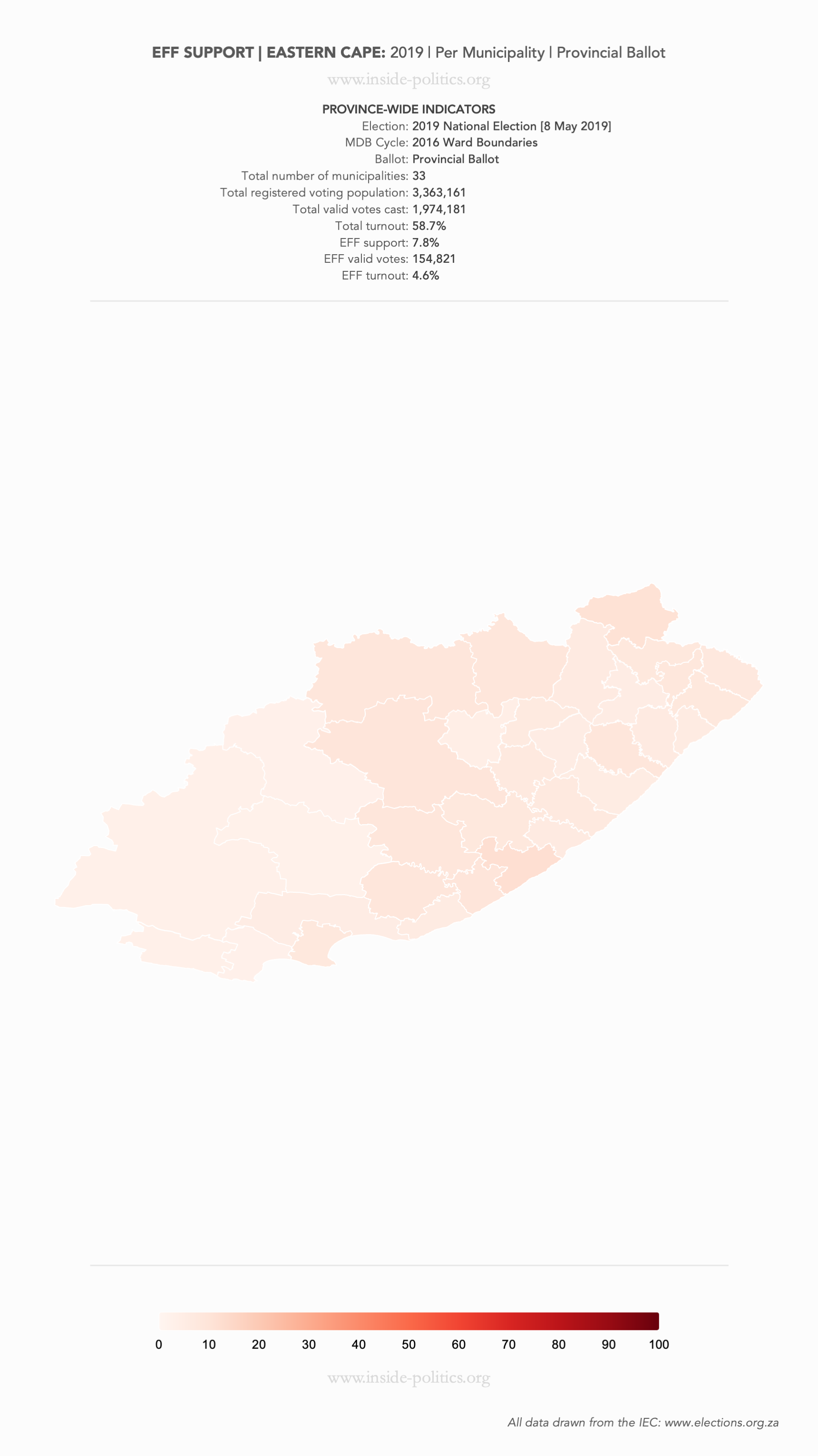 Heat Map: Eastern Cape | 2019 | EFF Support by Municipality