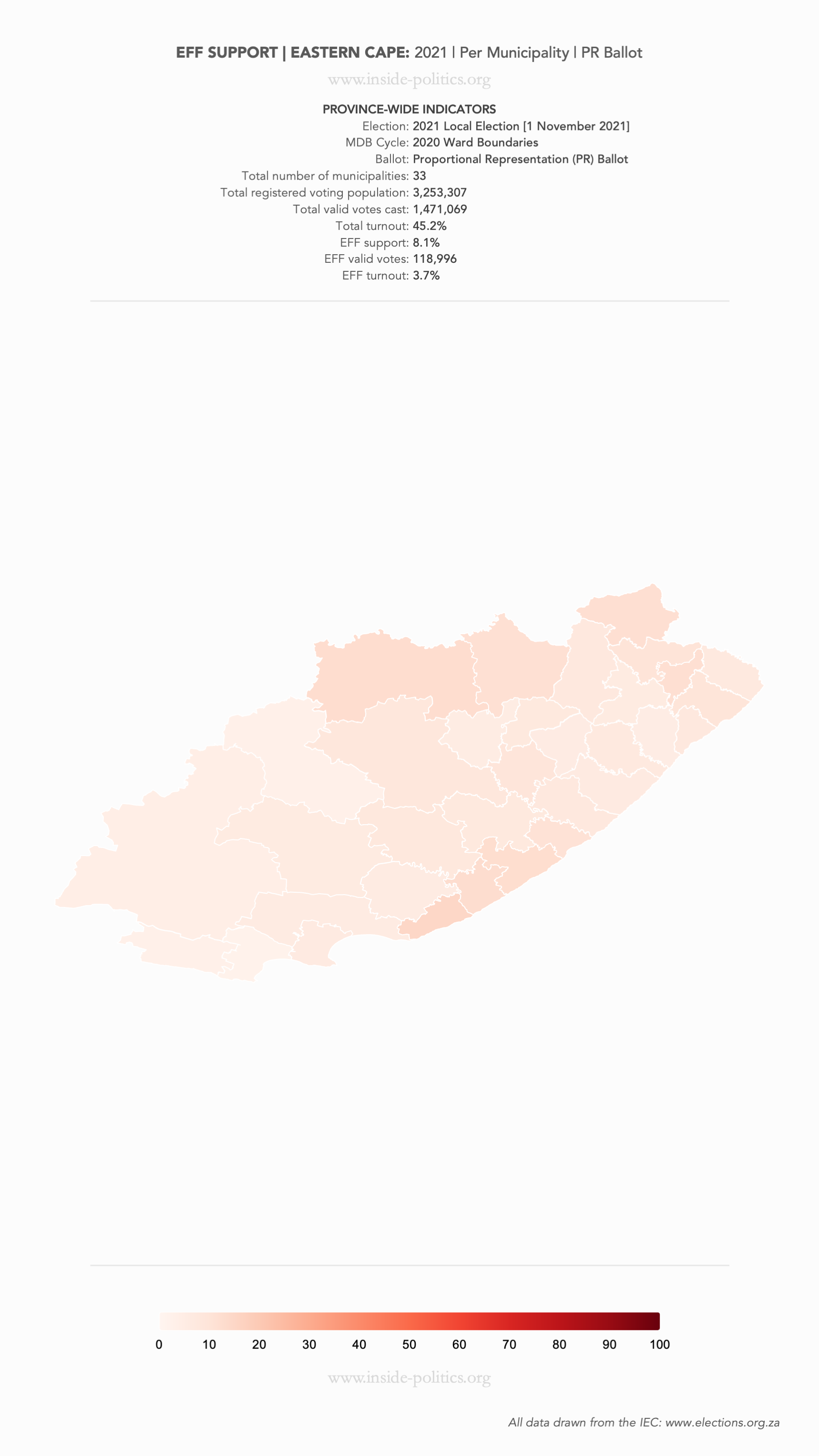 Heat Map: Eastern Cape | 2021 | EFF Support by Municipality