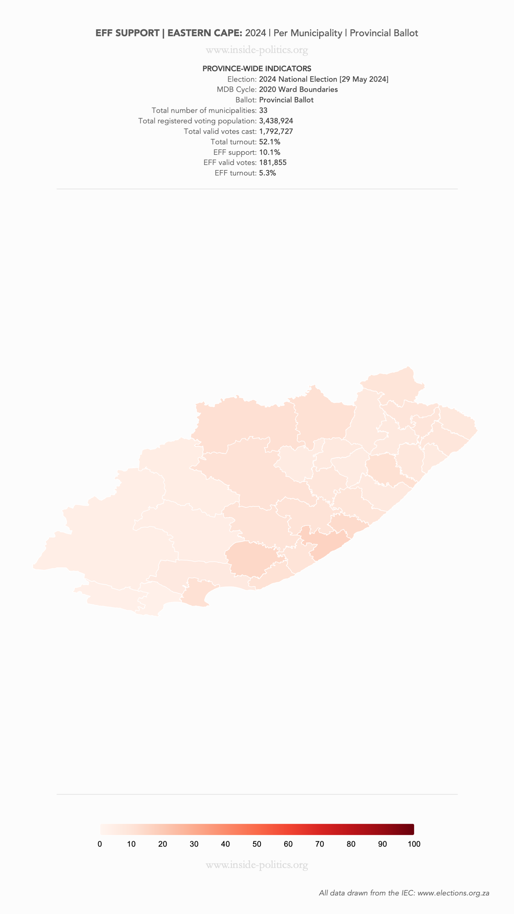 Heat Map: Eastern Cape | 2024 | EFF Support by Municipality