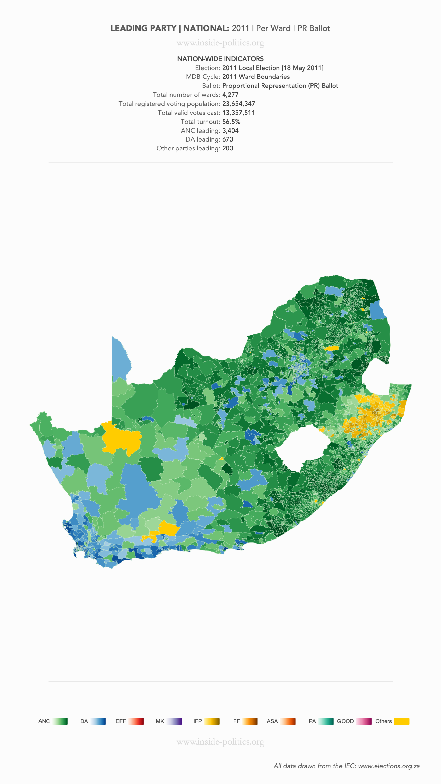 Heat Map: National | 2011 | Leading Party Support by Ward