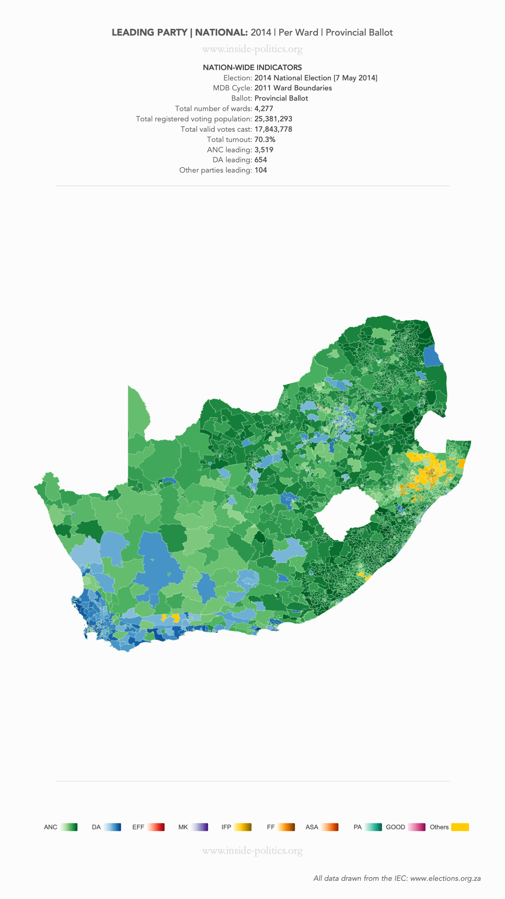 Heat Map: National | 2014 | Leading Party Support by Ward