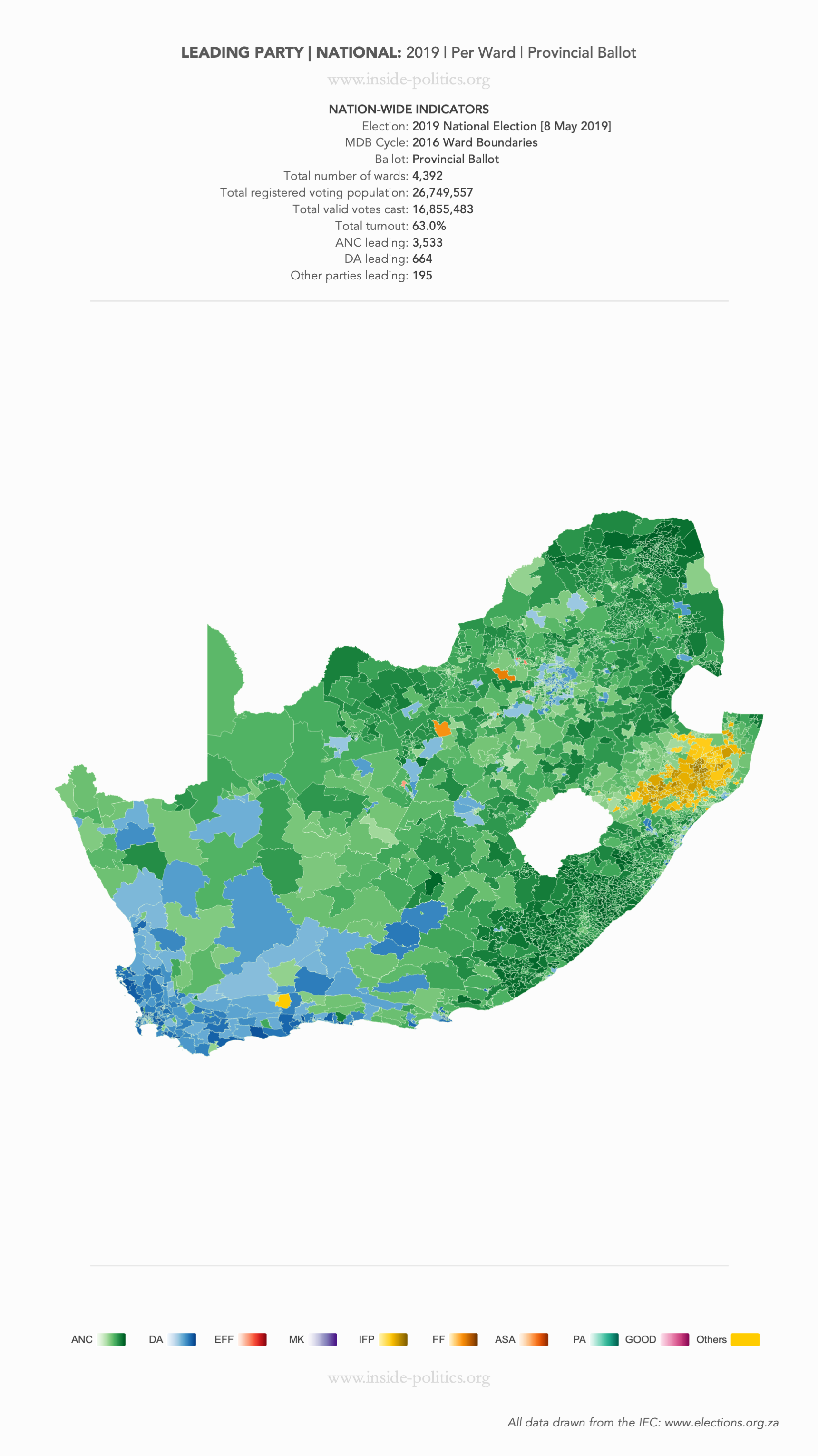 Heat Map: National | 2019 | Leading Party Support by Ward