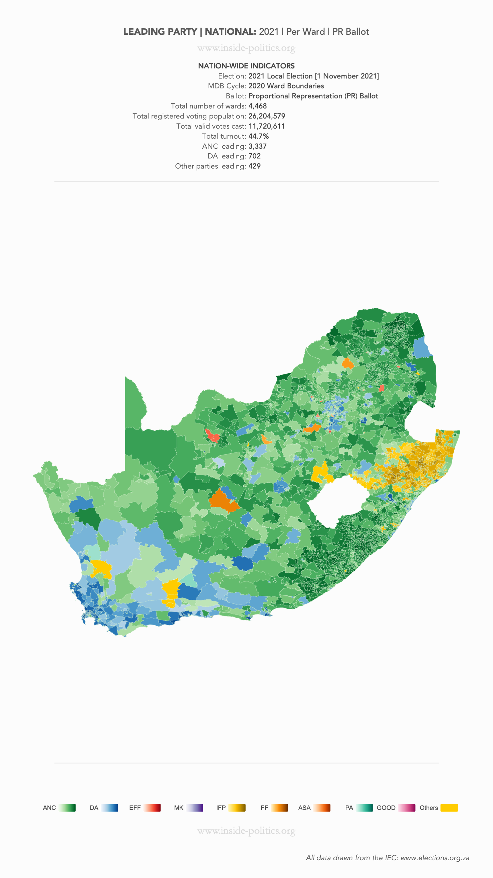 Heat Map: National | 2021 | Leading Party Support by Ward