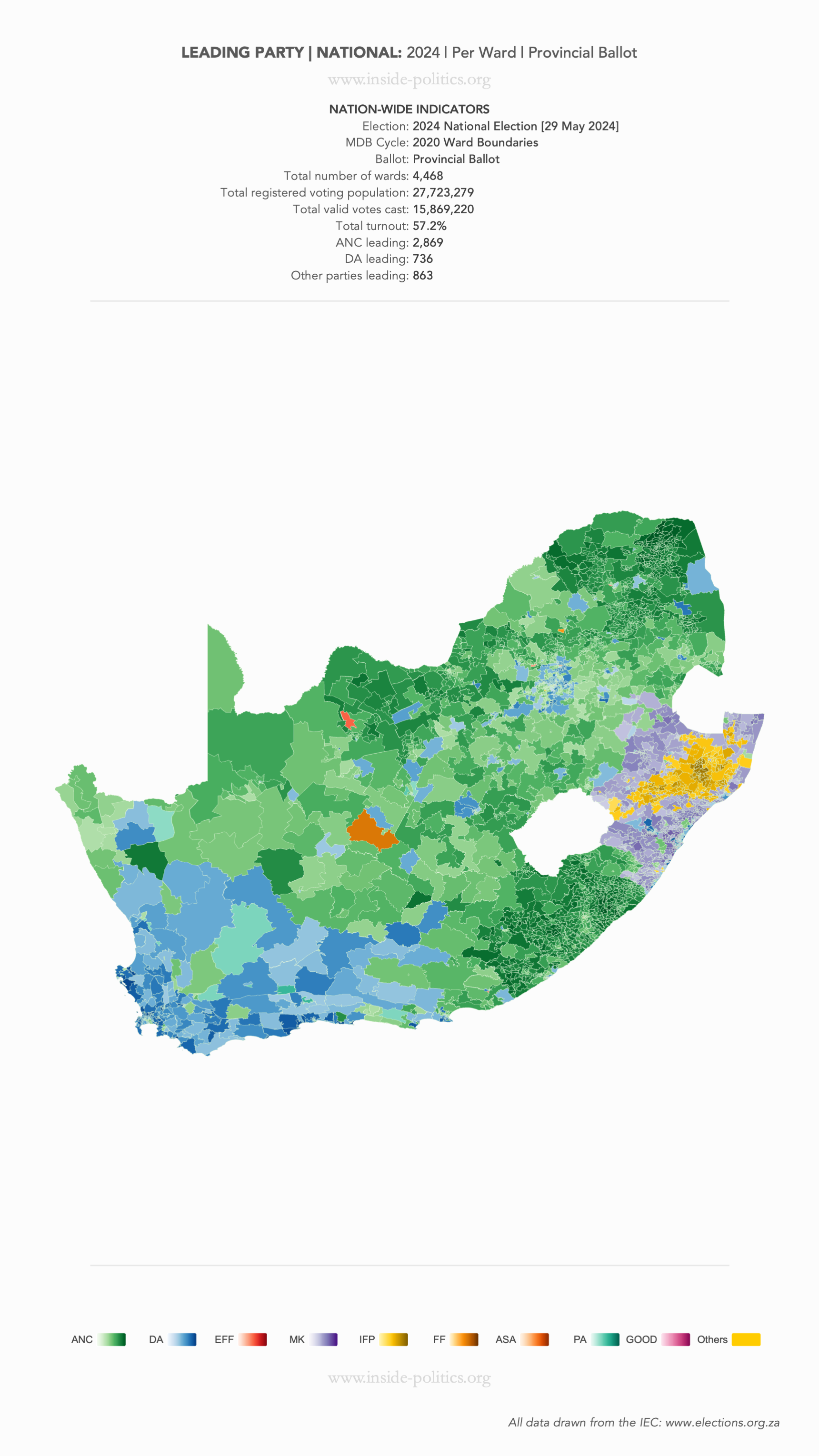 Heat Map: National | 2024 | Leading Party Support by Ward